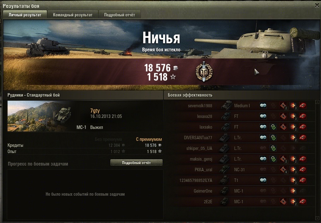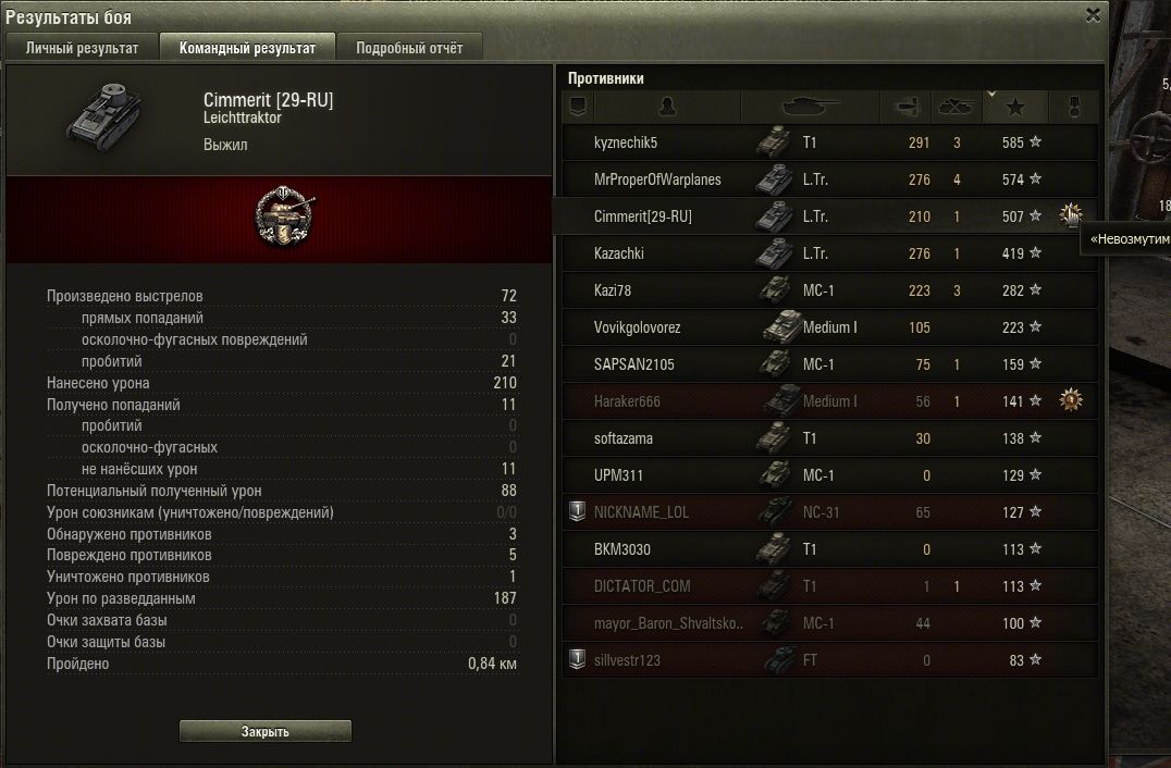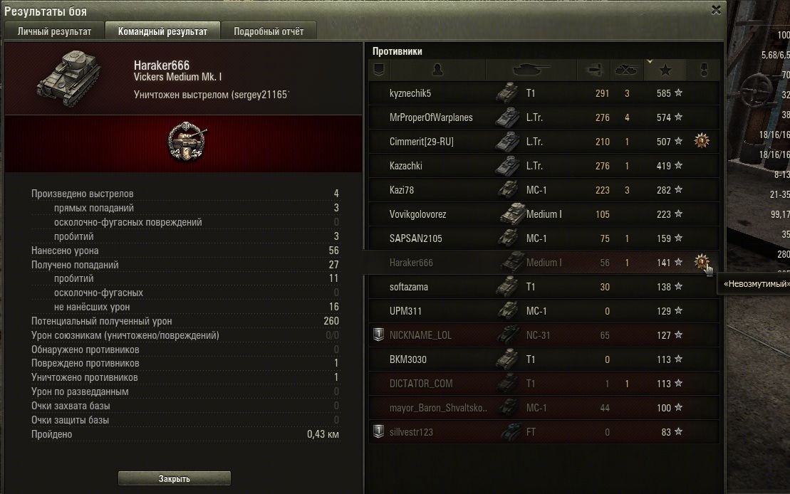 grig544 Опубликовано: 16 октября, 2013 Игроки 2 362 публикации 15 945 боёв Поделиться Опубликовано: 16 октября, 2013 (изменено) 16 Окт 2013 - 22:26 пользователь Mstiv сказал:27 попаданий, ну ни как не автоматы!Точняк голдой по нему лупили)) и всё изменение нормализации виновато!!! рас, расПросто до 0.8.6 для этих танков Невозмутимый был очень редок. У меня например ни одного не было, за 5000 боев. И Спартанец был всего один. А тут как посыпались.Одних Спартанцев 15. И 3 Невозмутимых. На МС-1.А в 0.8.6 именно нормализацию изменили. С чем еще связать?А автоматы и до 0.8.6 были и не меньше.У Vickers Medium Mk. I самая толстая броня 8 мм.Чем его можно не пробить? Если минимальная бронепробиваемость с учетом -25% равна 22мм. Только рикошеты.Объяснение стреляют через полкарты тоже не катит.Hispano-Suiza прошивает любой танк 1 уровня за 400м. У остальных пулеметов дальше 360м пульки просто не летят. А до 350м из ТНШ Медиум при стрельбе в бок отправляется в ангар с одной очереди. Да и нет таких расстояний в Рудниках. Изменено 16 октября, 2013 пользователем grig544 Knopka () сказал: Снаряд может вести себя довольно фривольно во время полета, но за пределы круга сведения он все равно не выйдет . В нике одна 4-ка лишняя. Отдохнул на курортах Банландии в общей сложности 25 суток. Ссылка на комментарий Поделиться на других сайтах Другие способы поделиться...