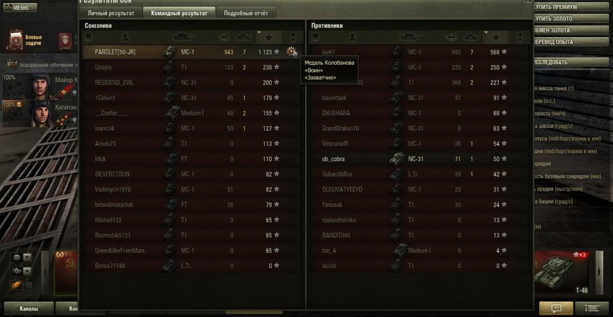 Давненько не выкатывал своего Мосю, и вот решил снова погонять. Думаю взять Колобанова мне помогла хитрость, позаимствованная у уважаемых мной Лисов, :smile: и активная смена позиций.