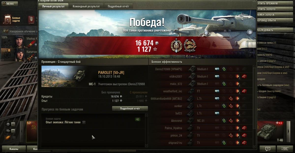 PAROLET Опубликовано: 19 октября, 2013 Игроки 8 400 публикаций 207 978 боёв Поделиться Опубликовано: 19 октября, 2013 (изменено) 19 Окт 2013 - 18:39 пользователь next99999 сказал:И как, ремонт сильно помогает на МС? Не возникало желания сменить его на"плавный поворот башни" или на "злопамятного" к примеру?Иногда возникает, но эти умения не командирские. А так как я этот экипаж частенько сажаю на другие танки, то выбрал сначала умения по основной специальности.Ну и пока не жалуюсь, экипаж не подводит. Вот опять он отличился несмотря на мою криворукость. Почти всем от него досталось... Изменено 19 октября, 2013 пользователем PAROLET 1 Aut cum scuto, aut in scuto! Ссылка на комментарий Поделиться на других сайтах Другие способы поделиться...
