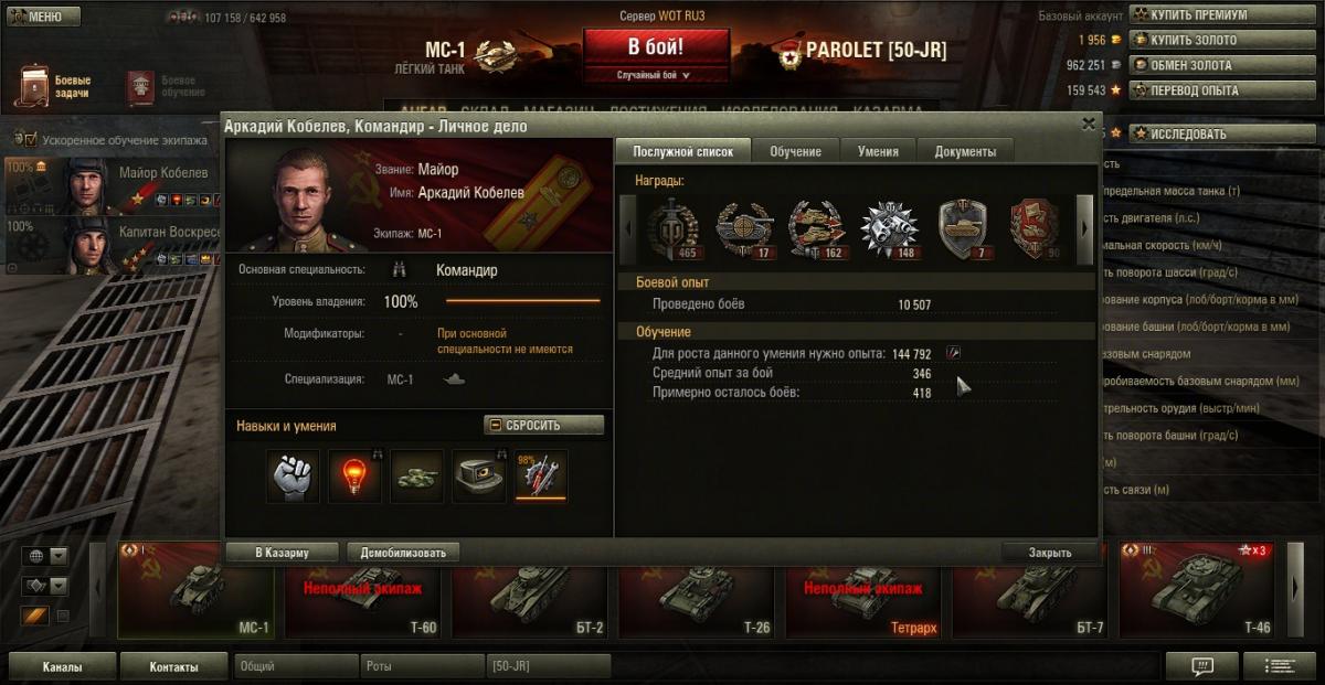 PAROLET Опубликовано: 19 октября, 2013 Игроки 8 400 публикаций 207 978 боёв Поделиться Опубликовано: 19 октября, 2013 После очередного боя у экипажа стало 98% последнего умения.Что бы стало 99% надо откатать и набрать опыта ... офигеть сколько :amazed: ... я наверное до 100% дойду к новому году или ещё позже на несколько месяцев 1 Aut cum scuto, aut in scuto! Ссылка на комментарий Поделиться на других сайтах Другие способы поделиться...