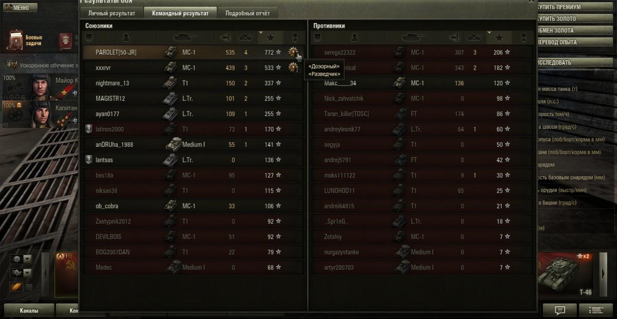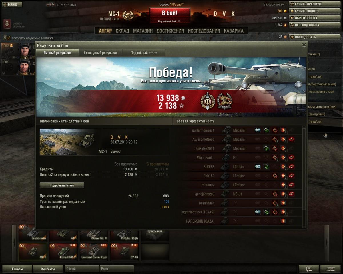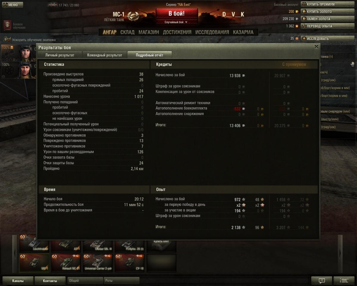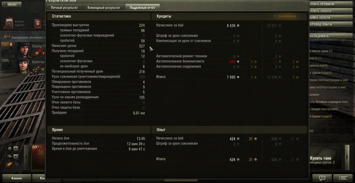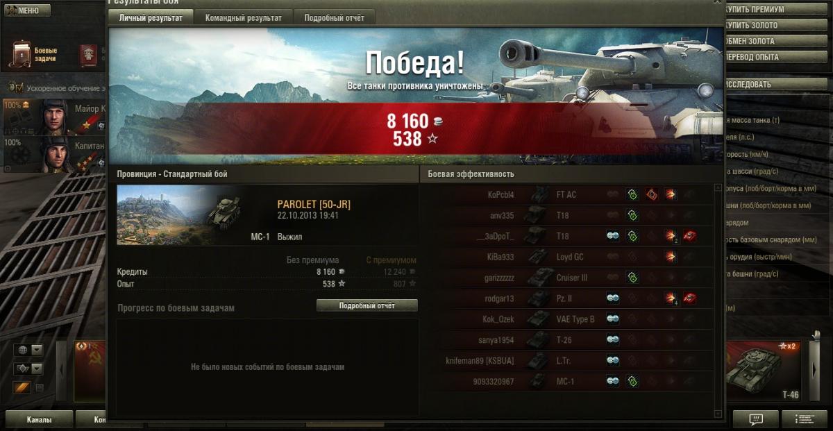 grig544 Опубликовано: 23 октября, 2013 Игроки 2 362 публикации 16 115 боёв Поделиться Опубликовано: 23 октября, 2013 (изменено) 23 Окт 2013 - 13:08 пользователь XuM4AHKA сказал:Позвольте не постесняться и выставить дамаг григовского пулемёта ТНШ - 527 единиц.Кажись, он больше, чем весь урон нашей команды (навскидку, на калькуляторе не считала).Порой, и 45-кой столько не настреляешь.Григ, спасибо тебе, всё время тебя вспоминала, когда Т1 разлетались вдребезги. Уж и не знаю, успевали ли они удивляться.Но наши точно удивлялись, приставали, типа, во девочка даёт...58 пробитий. ВБР тебя обсчитал на 53 единицы. Позор ВБРу!!!23 Окт 2013 - 13:06 пользователь Fool_On_The_Hill сказал:А куда ещё можно на T2 Light Tank в Провинции податься? Вот и катаюсь на гору и с горы ))))))Иногда умелые игроки на этом танке своими действиями определяют исход боя.Но заезд на гору к замку справа вижу второй раз всего. Изменено 23 октября, 2013 пользователем grig544 Knopka () сказал: Снаряд может вести себя довольно фривольно во время полета, но за пределы круга сведения он все равно не выйдет . В нике одна 4-ка лишняя. Отдохнул на курортах Банландии в общей сложности 25 суток. Ссылка на комментарий