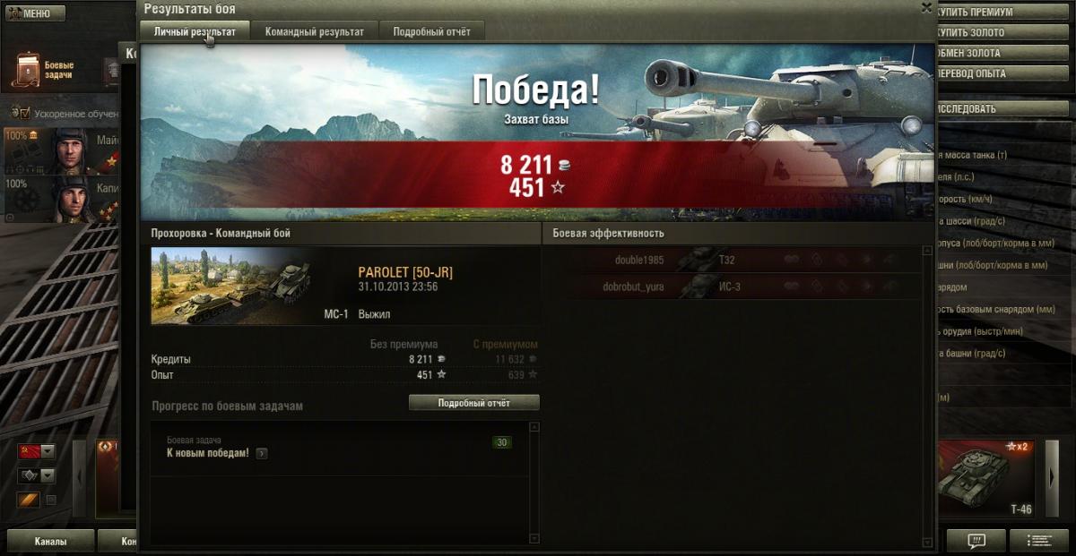 anonym_rx5hXOQAsHCM Опубликовано: 1 ноября, 2013 Игроки 685 публикаций 45 619 боёв Поделиться Опубликовано: 1 ноября, 2013 С 1 ноября 10:00 (МСК) до 4 ноября 9:30 (МСК) в World of Tanks будет проходить акция «Контраргумент», в рамках которой вы получите скидку на некоторые виды техники, а также сможете принять участие в различных игровых активностях.Во время акции вас ожидает: *Увеличенный в три раза опыт за первую победу в день для всей техники, вне зависимости от типа, уровня и нации.*Скидка 50% на премиум снаряжение (большие аптечки, большие ремкомплекты и т. д.) при покупке за игровое золото и кредиты.*Скидка 50% на снаряжение (аптечки, ремкомплекты, огнетушители и т. д.).Заставляют таки перекармливать экипаж...скоро в Мось не поместятся!))Лотос - возможно твой эпипаж просто зажрался...))) мои под доппайком стабильно глазастее становятся,заметнее это всего в Провинции и Малиновке со стандартных нычек. Ссылка на комментарий
