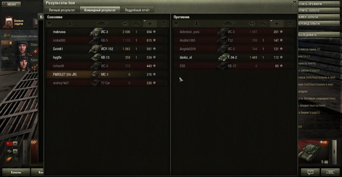 ZIS_Ural Опубликовано: 31 октября, 2013 Игроки 455 публикаций 21 742 боя Поделиться Опубликовано: 31 октября, 2013 31 Окт 2013 - 19:38 пользователь PAROLET сказал: А вот по поводу ОФ - был он им заряжен или нет - это вопрос? Я бы на его месте, видя что все ТТ работают в городе, при заходе на захват базы, предположил встретить именно МС-1. Чем бы лучше я зарядился на его месте? Наверное, заранее перезарядился на ОФ.Предположу, что он вообще не думал о том, что кого-то там встретит. Квасы берут в командные бои не самый продвинутый тип игроков. Единственный ТТ 6 уровня, более менее эффективный в 7/42 на мой взгляд - КВ-2, т.к. французам раздает не хуже восьмерок, разве что ДПМ страдает.Смысл перезаряжаться на ОФ для МС-1? Он в любом случае ваншот. 1 Ссылка на комментарий