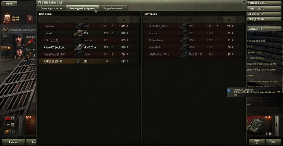 PAROLET Опубликовано: 31 октября, 2013 Игроки 8 400 публикаций 208 123 боя Поделиться Опубликовано: 31 октября, 2013 (изменено) 31 Окт 2013 - 18:21 пользователь RUDMOR сказал:Привет! Давно не виделись.Конечно ты прав, завалить КВАСа самому или совместно с кем нибудь, для МС-1 это уже достижение, а уж тем более ИС-3 и барабанщика 8ЛВЛ. :honoring:Но точности ради, не взыщи, спросить хочу.Если я правильно тебя понял, то КВАС заехал в круг справа из уха. В круге в этом месте есть скала.КВАС случайно не стоял за ней частично прикрывая свой корпус?Если, к примеру, ты находясь в снайперском режиме не заметил его поворота башни в твою сторону, так как он мог тебя всё же заметить, а твоя лампочка не сразу сработала, и он произвёл выстрел вместе с тобой. Иногда стоя за каким либо препятствием, видя хорошо силуэт противника и стреляя по нему, вместо попадания происходит удивительное - снаряд попадает в препятствие, в данном случае КВАС мог выстрелить в скалу стоя к ней в плотную. А если он был заряжен фугасом, то последствия для него очень печальные, а твой выстрел был решающий и окончательно его вынес.Реплея у тебя НЕТ. Скринов ты не успел сделать, это очевидно - ни кто в такой ситуации не сообразит их сделать.Возможно такое развитие событий:- Он встал за скалой частично выставив уязвимое место корпуса. Ты свёлся в снайперском режиме не замечая движения его башни - она вне поля обзора. Он заметил тебя и развернув быстро башню стреляет в скалу ОФ плотно к ней стоя, в результате чего сам себя ваншотит и критует свой БК. Твоя лампочка не сработала так как не прошло ещё 3-х секунд, и ты стреляешь в одно мнгновение(чуть позже) с его выстрелом. В результате оба выстрела сливаються в одно событие и КВАС "благополучно" уходит в ангар.Могло произойти так?Я ни сколько не ставлю твои слова под сомнения, знаю что врать и хвастать ты не будешь. А вот ошибиться все могут.Кстати, давай погоняем в команде, ты на МС-1, я на АРТе или ПТ. Привет Дёня! Рад встрече с тобой, вот уж не думал что забредёшь в тему о Мосе. Ты же "Бог войны"!Да и вообще для меня неожиданность что ты стал писать на форуме. Приятно что твой первый пост адресован мне.Что касаемо твоего вопроса, то смею заметить, что он меня озадачил, и я стал мысленно прокручивать события этого эпизода.КВАС действительно частично был прикрыт именно той скалой что ты подметил, я как то об этом и не подумал сказать ранее. И башня его, кстати уже была довёрнута влево в направлении города, ну и в мою сторону соответственно.Что же касается выстрела, то я не могу утверждать что он его не делал. Я играю на буке, соответственно в настройках все эффекты и детализации поставил на минимум или выключил. Не знаю, виден ли выстрел противника со стороны. ни когда не обращал на это внимания, если все настройки на минимуме. Но я точно не видел этого - ни вспышки, ни чего либо другого.Если он действительно меня заметил и выстрелил, или просто хотел шмальнуть в направлении города где он мог видеть моих союзников, и всё произошло как ты описал, то очень даже вероятно что я этого не понял, и всё именно так могло быть!Спс за твой вопрос, твой опыт игры на САУ(ПТ и АРТ) оказался очень кстати мне, думаю и другим то же.__________________________________________________________________________________________________________________________С огромным удовольствем посвечу тебе в бою - приглашай. Кстати, помнишь бои взводом, где благодоря тебе я получил одног