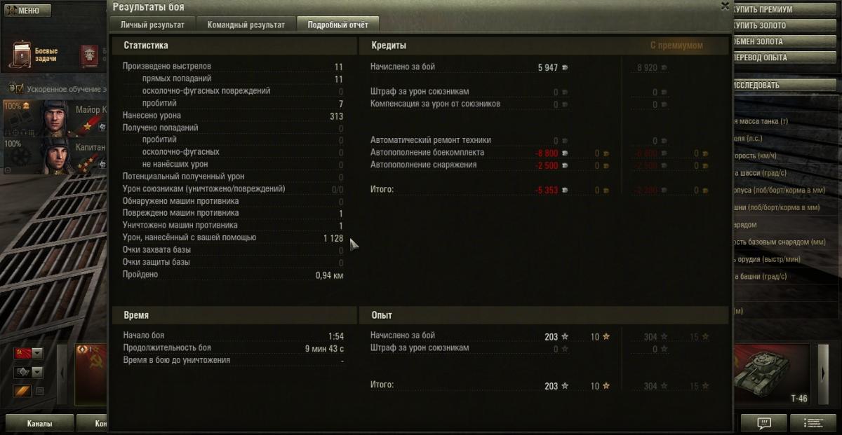 D__V__K Опубликовано: 2 ноября, 2013 Игроки 761 публикация 14 383 боя Поделиться Опубликовано: 2 ноября, 2013 А из скольки боёв ваш экипаж выходит полностью здоровым? Вы про 50% штраф на опыт для контуженных членов экипажа не забыли? 1 Ссылка на комментарий