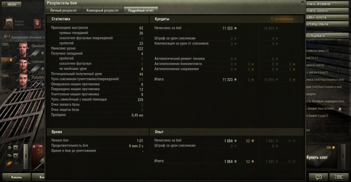 OCHA3_TypkBO Опубликовано: 11 ноября, 2013 Игроки 590 публикаций 7 686 боёв Поделиться Опубликовано: 11 ноября, 2013 (изменено) 10 Ноя 2013 - 22:58 пользователь AleneJob сказал:Поздравляю....Странно, но на wotreplays у тебя записано только 909 урона.Спасибо, ребята!Да, про урон уже не раз обсуждалось.Верно Зонги и АК_АЮУ говорят - потенциального.У меня 26 попаданий. Умножить на наш урон (какой он там у нас?), вроде бы, на 51. Изменено 11 ноября, 2013 пользователем XuM4AHKA Ссылка на комментарий