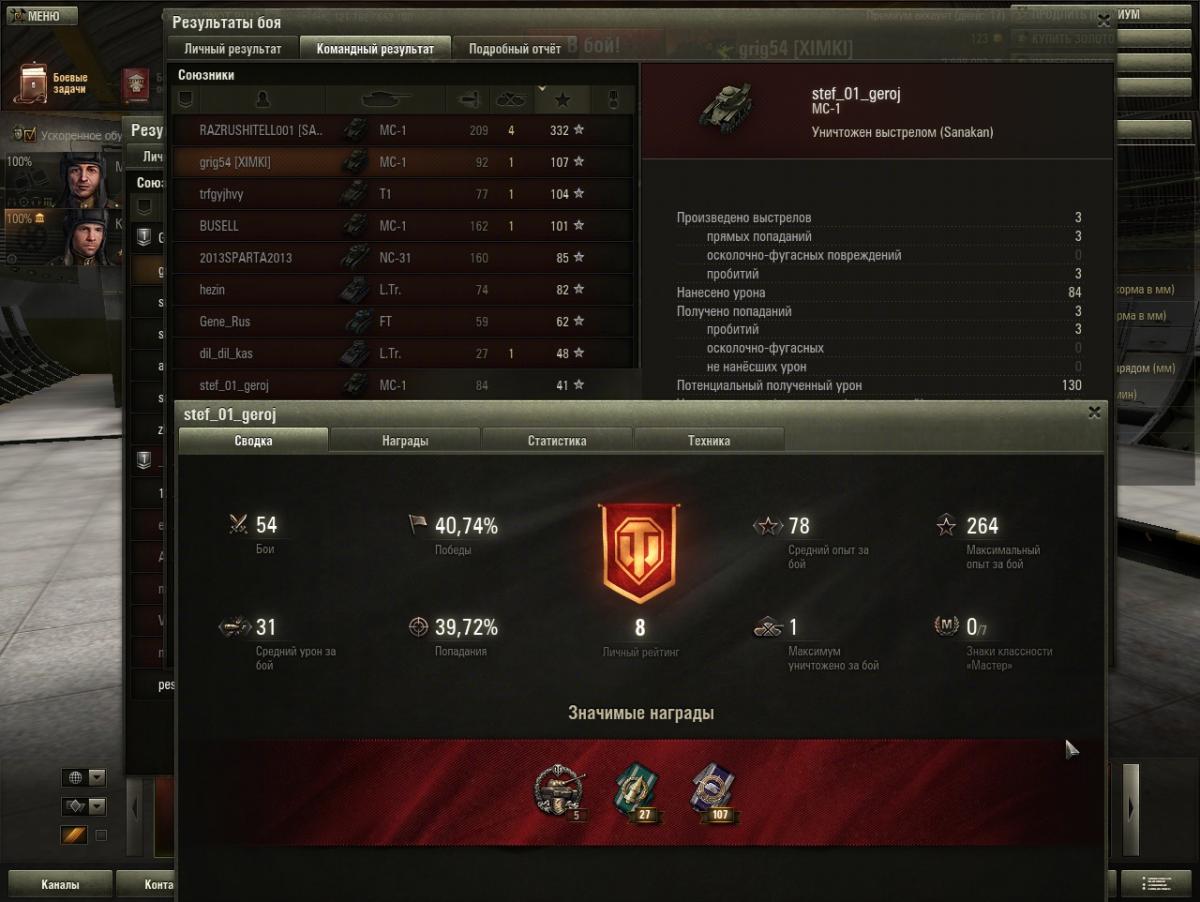 Ugolock7 Опубликовано: 16 ноября, 2013 Игроки 5 212 публикации 38 841 бой Поделиться Опубликовано: 16 ноября, 2013 Вот, довольно удачно сыграл один бой сегодня на американском сервере.На Рудниках играл с нелюбимой мной верхней базы. ИМХО, играющие с нижней базы имеют преимущество. Играл к маяку, потом возвращался для сбития захвата к своей базе. Удалось укокошить "нагибателя песка" - немецкого Гочкиса. http://cdn-frm-eu.wargaming.net/wot/ru/uploads/monthly_11_2013/post-6407000-0-83330500-1384605734_thumb.jpg 1 Т-54, Т-55, Т-62, Т-72. Сумею и на Т-64. В реале. Ссылка на комментарий