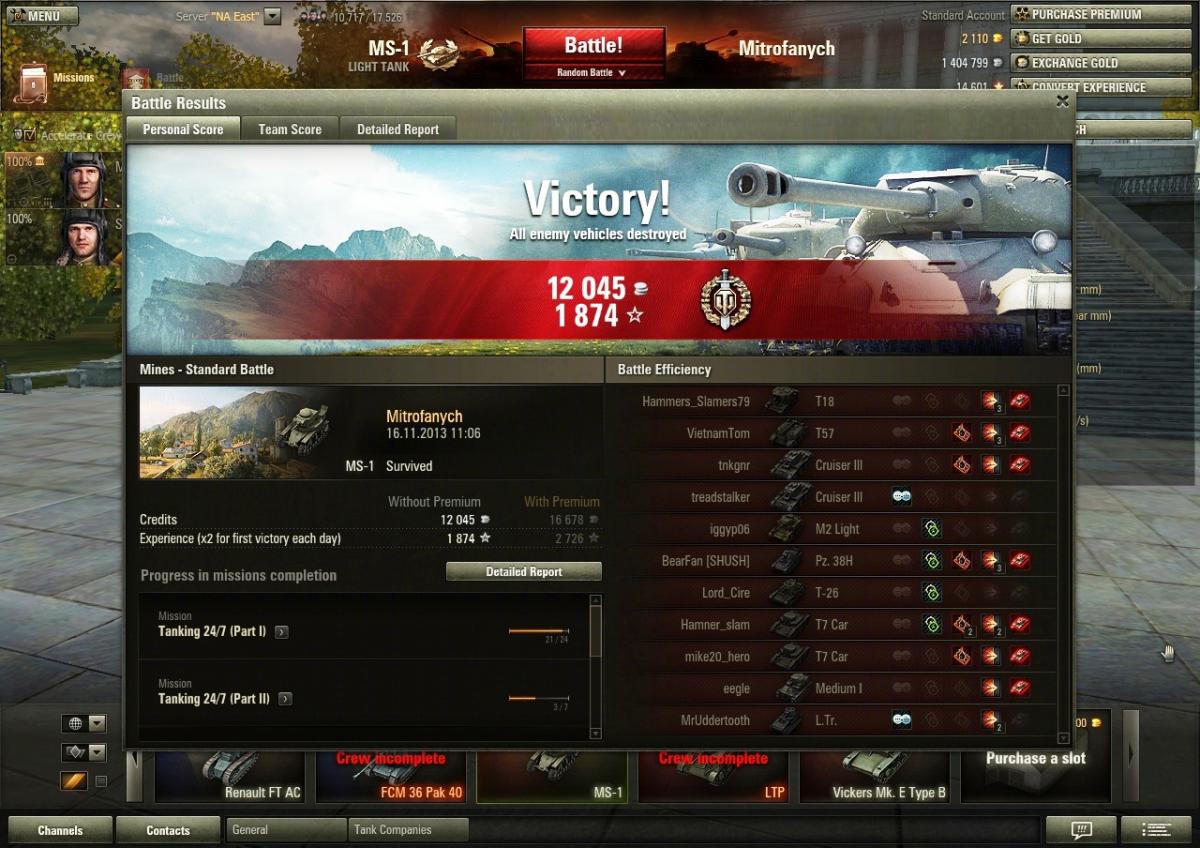 Nikck_M Опубликовано: 16 ноября, 2013 Игроки 4 053 публикации 18 173 боя Поделиться Опубликовано: 16 ноября, 2013 16 Ноя 2013 - 15:47 пользователь Ugolock7 сказал:Вот, довольно удачно сыграл один бой сегодня на американском сервере.На Рудниках играл с нелюбимой мной верхней базы. ИМХО, играющие с нижней базы имеют преимущество. Играл к маяку, потом возвращался для сбития захвата к своей базе.Удалось укокошить "нагибателя песка" - немецкого Гочкиса. http://cdn-frm-eu.wargaming.net/wot/ru/uploads/monthly_11_2013/post-6407000-0-83330500-1384605734_thumb.jpgОтлично сыграл,молодец. 16 Ноя 2013 - 16:00 пользователь next99999 сказал:Блииин, что-то всё больше хочется на амерском серваке покататьЕсть даже программы,с помощью которых не придется качать еще 1 клиент.Но аккаунт на американский сервер нужен другой или можно подождать роуминга. В этой игре заслуга не за прокачанным экипажем, а за наличием прямых рук и серего вещества в черепной коробке. Дай 44-хпроцентному нубу танк с 5-типерковым экипажем, он и на нем будет сливаться с точно таким же успехом, как и раньше© stalkerreturnПушистый Альянс - альянс любителей МС-1. Заявки оставлять тут. Ссылка на комментарий