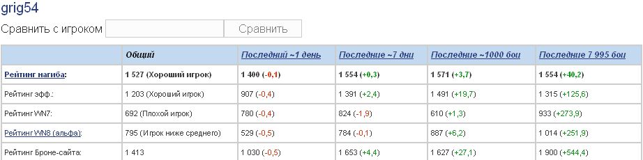 grig544 Опубликовано: 29 ноября, 2013 Игроки 2 362 публикации 16 220 боёв Поделиться Опубликовано: 29 ноября, 2013 (изменено) 29 Ноя 2013 - 09:29 пользователь Mikhaelis сказал:Сколько опыта надо на мастера? Хочу на этих выходных попробовать взять...http://worldoftanks...._and_renorming/Сами цифра на сейчас являются секретными . И динамическими.Хотя наверно могли бы где нибудь публиковать в режиме реального времени.Но 7-8 убитых танков наверно позволят Мастера взять. Около 900-1000 где-то.29 Ноя 2013 - 09:35 пользователь bilileon сказал:У тебя РЭ 1203. В "оленеметре" ты, судя по всему, зелёный. Для чего РЭ? Сложно сказать. Как, по мне, это лучший показатель качества игрока. Другой вопрос РЭ - не идеальный показатель.И он подкручивается. Особенно на МС-1.Стоит ли его поднимать? Дело личное. В игре у каждого свои цели и приоритеты. НЕсли эти цифирьки есть, значит кому-то надо. Не возражаю, пусть считают. Изменено 29 ноября, 2013 пользователем grig544 Knopka () сказал: Снаряд может вести себя довольно фривольно во время полета, но за пределы круга сведения он все равно не выйдет . В нике одна 4-ка лишняя. Отдохнул на курортах Банландии в общей сложности 25 суток. Ссылка на комментарий