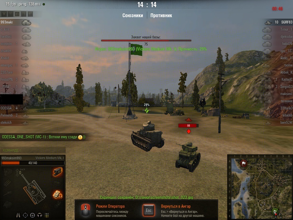 next99999 Опубликовано: 8 декабря, 2013 Игроки 3 397 публикаций 14 160 боёв Поделиться Опубликовано: 8 декабря, 2013 (изменено) 08 Дек 2013 - 15:42 пользователь 7gty сказал:70/70/95 урон Medium Mk. I. наносит 1 выстрелом 101 урона по мне. раньше такого небыло. с бб08 Дек 2013 - 16:56 пользователь 7gty сказал:101 показывает лог урона при ваншоте. пак джова. он же показывает тип боеприпаса. 2 раза подряд бк взрывался при встрече с медиумом? возможно...Когда полного хп 100, а лог урона показывает больше - напрашивается вывод что пак глючный, или же показывает потенциальный урон:)08 Дек 2013 - 17:09 пользователь 7gty сказал:пришлось капать реплеи. боеукладку рвали 2 раза. рандом мать его Бывает) И экипаж порой выносят в 2-х, 3-х боях подряд, и сам рвёшь по 2 БК порой за бой Вспомнил тоже, как меня Медиумы пару раз сваншотили фулового, правда не через взрыв БК, а фугасом сняли 100 хп. Захотелось слегка обстрелять МСа в трене - вот что получилось :- в гриб не ваншотят- в гуслю очень мало снимают- в борта не ваншотят- ваншотят в лоб под башню (там где люк мехвода) почти всегда (по крайней мере вблизи)- ваншотят в "скулы" часто (не знаю точно как эти места называются - в видео видно куда)Но если МС не фуловый, а хотя бы 94 хп, то вблизи для Медиума с фугасом скорее всего будет уже ваншотным.Обстреливал с 50%-м экипажем :Жаль, что взрыва БК так и не получилось добиться. Изменено 8 декабря, 2013 пользователем next99999 2 УДАЛИТЕ МИТТЕНГАРД, ВЕРНИТЕ ПРОВИНЦИЮ, верните малиновку в "песок" Ссылка на комментарий Поделиться на других сайтах Другие способы поделиться...