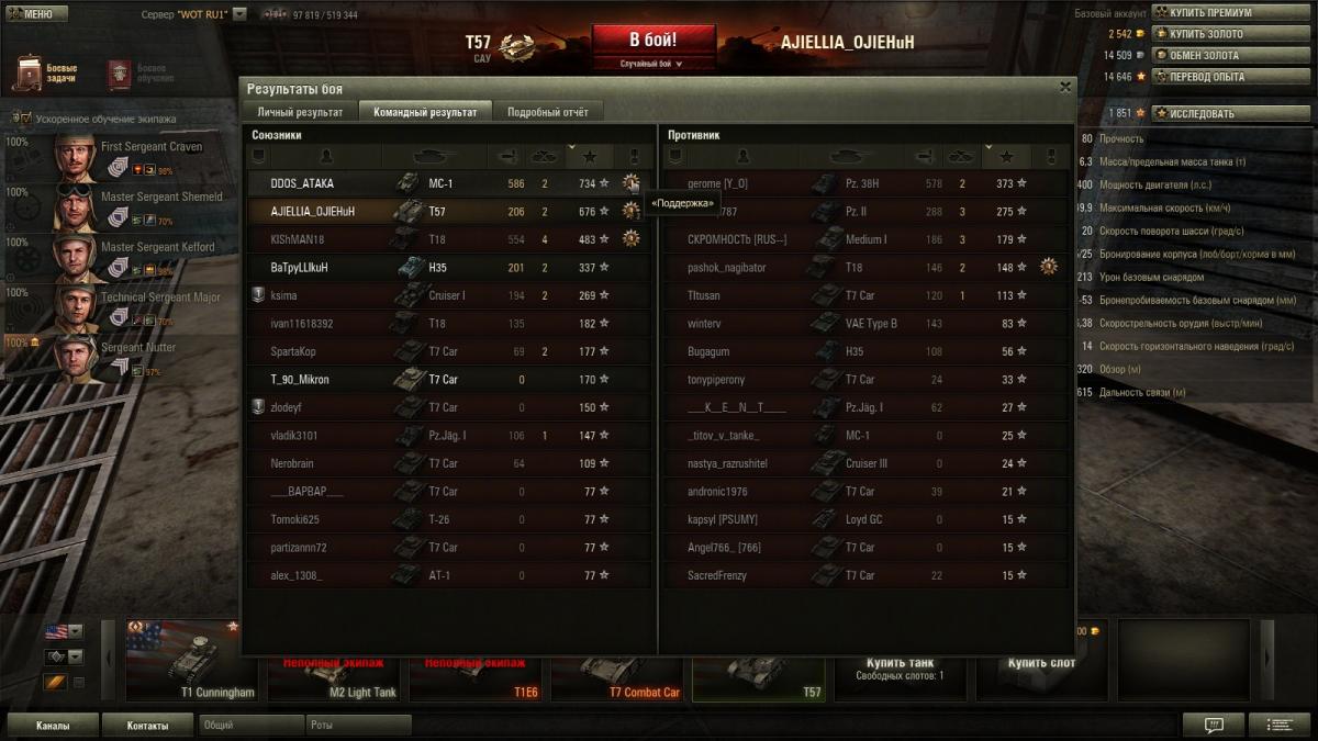 _Baker Опубликовано: 12 января, 2014 Игроки 1 168 публикаций 45 265 боёв Поделиться Опубликовано: 12 января, 2014 (изменено) 12 Янв 2014 - 16:17 пользователь NOVIGATOR64 сказал:типа как у других танкистов результаты за 1000 боёв на мс1.......что так плохо ? Плохо. Соло на МС держу 62,5 примерно, 1 воин на 10 боев, коэффициент уничтожения 5,15.И это учитывая что я клешнерукий. Изменено 12 января, 2014 пользователем _Baker Вернете Провинцию, начну играть. Ссылка на комментарий Поделиться на других сайтах Другие способы поделиться...