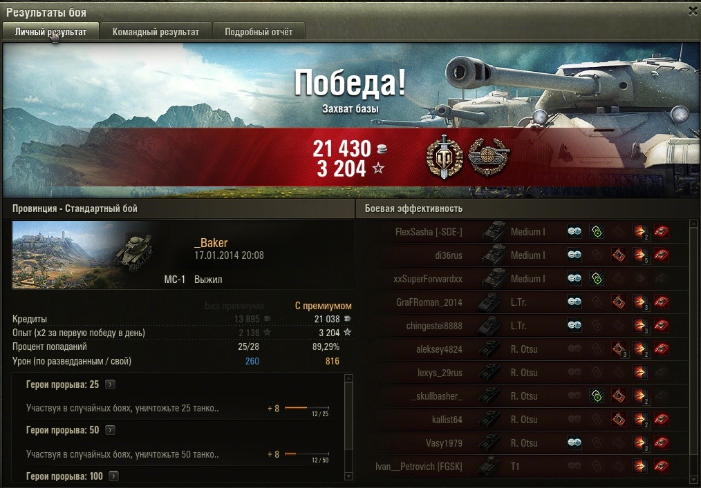 _Baker Опубликовано: 17 января, 2014 Игроки 1 168 публикаций 45 265 боёв Поделиться Опубликовано: 17 января, 2014 (изменено) 17 Янв 2014 - 21:14 пользователь Malchik_Nagibalchik сказал:А почему печаль ?Потому что в следующем патче меняются условия получения "Снайпера", см. анонсы.Мальчик, а ты во взвод какую бы взял МС из этих?http://cdn-frm-eu.wargaming.net/wot/ru/uploads/monthly_01_2014/post-2895968-0-22995200-1389986968_thumb.jpghttp://cdn-frm-eu.wargaming.net/wot/ru/uploads/monthly_01_2014/post-2895968-0-20828700-1389986976_thumb.jpg Изменено 17 января, 2014 пользователем _Baker Вернете Провинцию, начну играть. Ссылка на комментарий Поделиться на других сайтах Другие способы поделиться...
