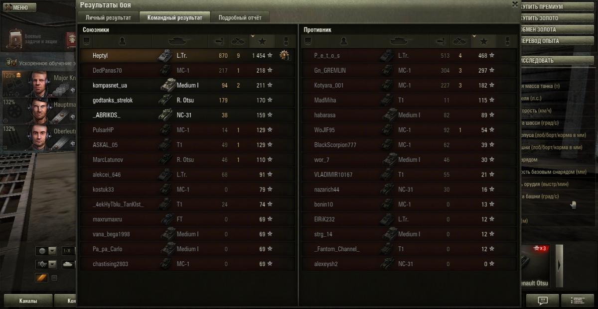 Heptyl Опубликовано: 7 февраля, 2014 Игроки 598 публикаций 10 715 боёв Поделиться Опубликовано: 7 февраля, 2014 08 Фев 2014 - 02:52 пользователь _Baker сказал:Таки да, бан кажется кончился, есть повод привести статистику и повторить свой пост с картинками без выражений которые могут дать повод модераторам.Благо она пополнилась.Что надо еще делать чтобы выигрывать?Если представителям ВГ нечего внятно ответить опираясь на факты и цифры, лучше просто промолчите.Так вот, статистика в цифрах, показывающая, что результаты боя, зависят только от доброй воли картошки.Посему, повторяюсь еще раз, платить реальные деньги за игру в которой от тебя ничего не зависит - глупо.Рубите дальше сук на котором сидите. Не потому-ли не обнародуются (срываются) некоторые характеристски? Их можно динамически менять от боя к бою.С детства приучен не играть с шулерами в карты на деньги, если ты не шулер более высокого класса.Это в пределах одной сессии из 16 боев. Процент побед 25 :( Что-то я не пойму, в чём причина истерики?Думаю, у каждого бывают сливные сессии. Бывает, что игра просто не идёт. Я, к примеру, в таких случаях просто делаю перерыв на сутки. Это, кстати, не только в игре бывает, но и в других, менее виртуальных делах.Можно, конечно, срывать покровы с заговоров КВГ, ежесекундно следящего за всеми сорока миллионами с лишним аккаунтов и динамически меняющего им характеристики, но это, по-моему, сильно смахивает на паранойю.И реальные деньги ведь никто и не заставляет платить. Мне, к примеру, и без вливания реала нормально играется.Вот сегодня сессия из 18 боёв. 16 побед, 2 поражения. Машины - мось и трактор с 390% перков, гоч с 260% перков и паровоз вообще без перков.И картинки есть вроде вашей, только результат противоположный.Вот, к примеру:http://cdn-frm-eu.wargaming.net/wot/ru/uploads/monthly_02_2014/post-12102292-0-05390500-1391804490_thumb.jpg Ссылка на комментарий Поделиться на других сайтах Другие способы поделиться...