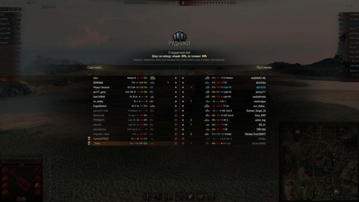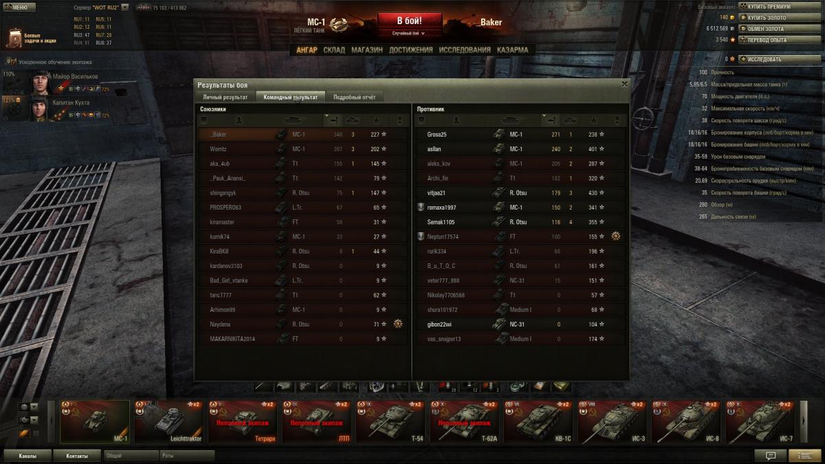 RenamedUser_26672094 Опубликовано: 7 февраля, 2014 Игроки 17 публикаций 699 боёв Поделиться Опубликовано: 7 февраля, 2014 07 Фев 2014 - 15:31 пользователь next99999 сказал:Мне тут лично смешно показалось - что у одного МС-1 против двух Т1, да ещё в Химках, шанс на победу показывает 70%. Ну это да)))) как будто не мс а что то из ТТ а мало ли в умелых руках мс порешает только не знаю как Ссылка на комментарий Поделиться на других сайтах Другие способы поделиться...