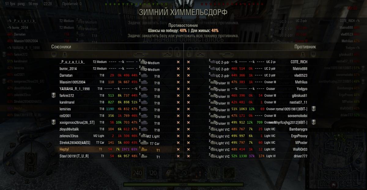 anonym_rx5hXOQAsHCM Опубликовано: 13 февраля, 2014 Игроки 685 публикаций 45 619 боёв Поделиться Опубликовано: 13 февраля, 2014 13 Фев 2014 - 08:59 пользователь PinocioPanzer сказал:Самая зависимая карта от команды для МС-1 мне кажется - это рудники *хотя конечно я и видел видео с 15-ми фрагами именно на рудниках, но это просто охрененное везение*Самая самая это Химки ...потому как кучкующиеся "доярки" на других картах это пол беды...,а тактика высоко сижу -далеко гляжу тут( на Химках) не работает.Любой качественный прорыв череват ангаром,Химки это Мекка для скорострелов! 1 Ссылка на комментарий Поделиться на других сайтах Другие способы поделиться...