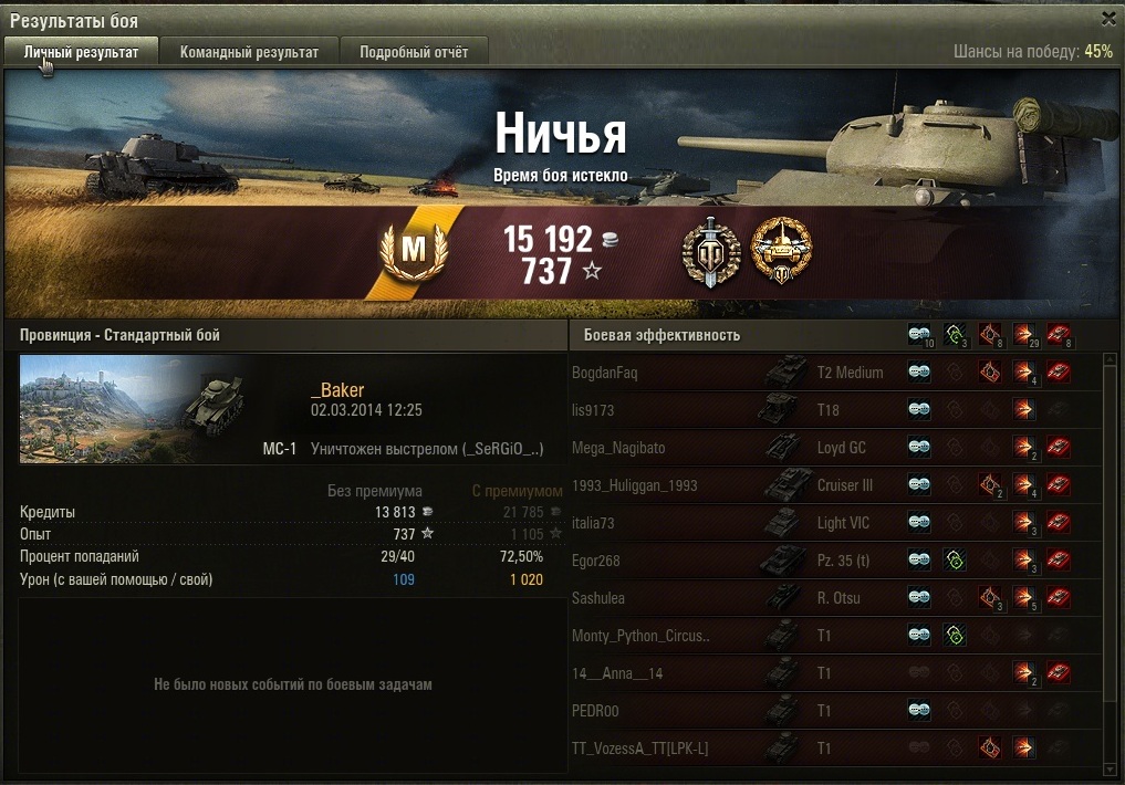 anonym_uZLOfch37k88 Опубликовано: 1 марта, 2014 Игроки 945 публикаций 24 657 боёв Жалоба Поделиться Опубликовано: 1 марта, 2014 01 Мар 2014 - 23:42 пользователь PAROLET сказал:Привет!Не знаю, отвлекал я Светлану или нет. Я не преследовал такой цели, я не коварный, просто в тот момент искренне желал им победы. Но если даже я их отвлекал, то они показали своё мастерство. Лично меня в чате раздражает только хамство, а подобные посты не отвлекают.Я не совсем понял где я дискридитировал её заслуги. Она всех уничтожила мастерски, я лишь пояснил что сам не приложил ни каких усилий что бы им противостоять, и уточнил причины. Просто Вы не верно истолковали смысл того что я писал. PS. Вообще данная дискусия наглядно показывает отношение людей к некоторым , вроде простым, вопросам человеческих взаимоотношений в игре и жизни.Вы меня простите но я на самом деле уважаю Вас как игрока... Свое мнение я высказал если сочтете нужным мы сможем обсудить это в личке или по скаипу 2 Ссылка на комментарий Поделиться на других сайтах Другие способы поделиться...