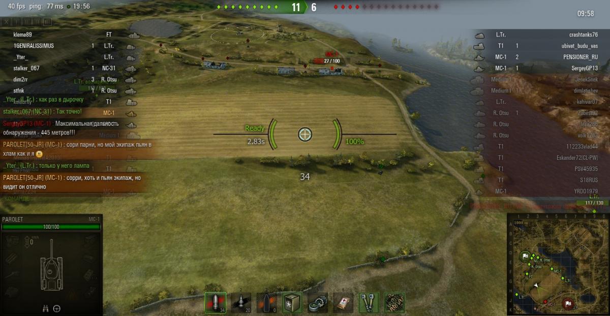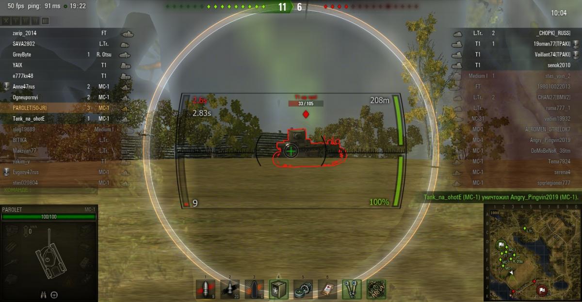 grig54 Опубликовано: 8 апреля, 2014 Игроки 6 228 публикаций 49 354 боя Поделиться Опубликовано: 8 апреля, 2014 (изменено) 08 Апр 2014 - 13:12 пользователь Kohlenklaw сказал:Ну так, я же реплей не просто так выложил. Где я там заливал? Решает не танк, решают руки и голова. Может ты невнимательно меня читал, но речь шла о тех, кто однозначно считает, что МС-1 в городе против Т1 не тянет. А большая предрасположенность Т1 к городу, эт само собой. Но не о том ведь речь.Т1 одинаково опасен на всех картах. Но его опасность сильно зависит от водилы и насколько он прокачен. Просто нельзя его близко подпускать и нельзя стоять на месте если на него нарвался, обязательно двигаться поперек. Из пулемета очень сложно всей очередью попасть в движущуюся мишень.Стоящий МС-1 элементарно убивается одной очередью с 300м, правильно движущийся МС-1 может выжить и на дистанции 50м. А потом наступает перезарядка 10 сек. Изменено 8 апреля, 2014 пользователем grig54 1 −−−• − −−− −• •− −−−− •− •••− •• −−•• −• −••− ••−−•• •• −−• •−• •− Фортуна любит смелых, а ВБР красных. ВЕРНИТЕ ПРОВИНЦИЮ-положите туда откуда взяли!!! Враг хитер и коварен. Огонь Провел на курортах Банландии 190 дней Ссылка на комментарий Поделиться на других сайтах Другие способы поделиться...