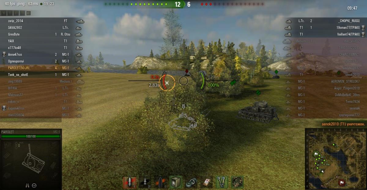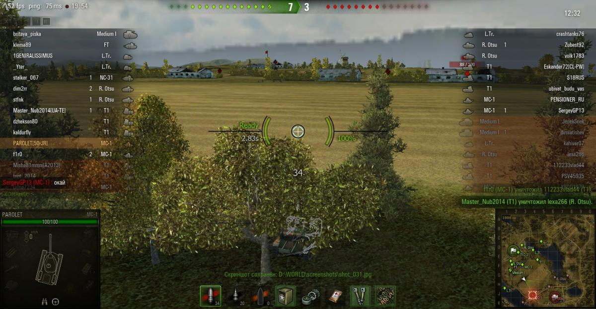 PAROLET Опубликовано: 7 апреля, 2014 Игроки 8 400 публикаций 207 968 боёв Поделиться Опубликовано: 7 апреля, 2014 07 Апр 2014 - 19:50 пользователь Kuzmische сказал:Вопрос по МС-1 и кустику:г-н Паролет, реально ли доехать не засветившись без скрученного регулятора?Хотя, сейчас подумал и понял ответ. Это как кусты на болоте. Все зависит от разъезда противника и кто, когда, где остановился. Но на болоте можно ехать по ряду кустов, и, если в лоб никто не прет - можно стать(с нижнего респа).И вообще - все нормальные кусты с нижнего респа. Для верхнего только пара над болотом. остальные весьма спорны.Я уже писал ранее что в центральный кустик сразу идти очень рискованно. гораздо безопаснее пройти в него через кустик справа в несколько этапов(читайте предыдущие посты). 30 Aut cum scuto, aut in scuto! Ссылка на комментарий Поделиться на других сайтах Другие способы поделиться...