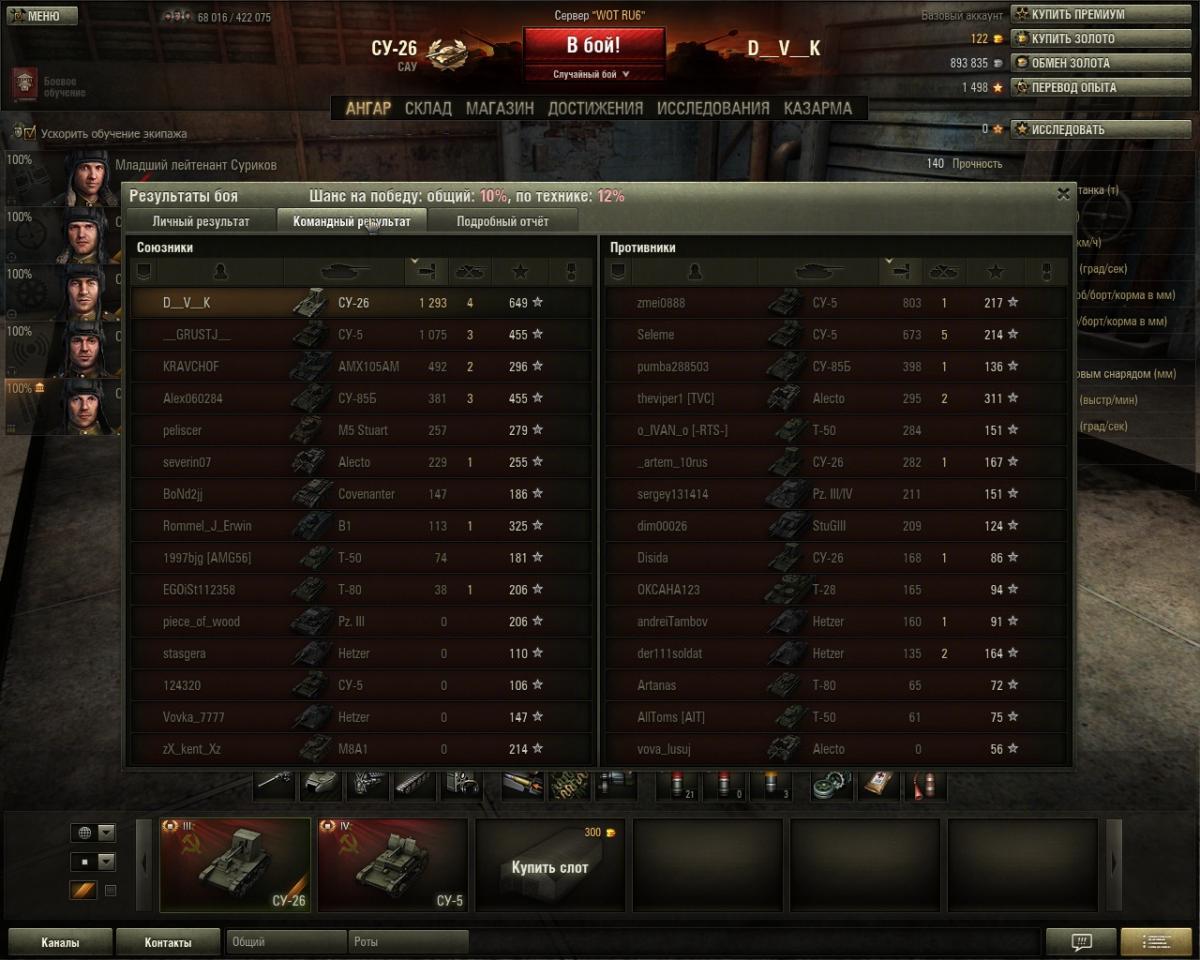 И не устану повторять или до бана или до тех пор пока не услышит ВГ, взводную игру надо выводить в отдельный режим, как и ротный. Вот тогда перестанут набивать стату взводами против сольников и кичиться этим.