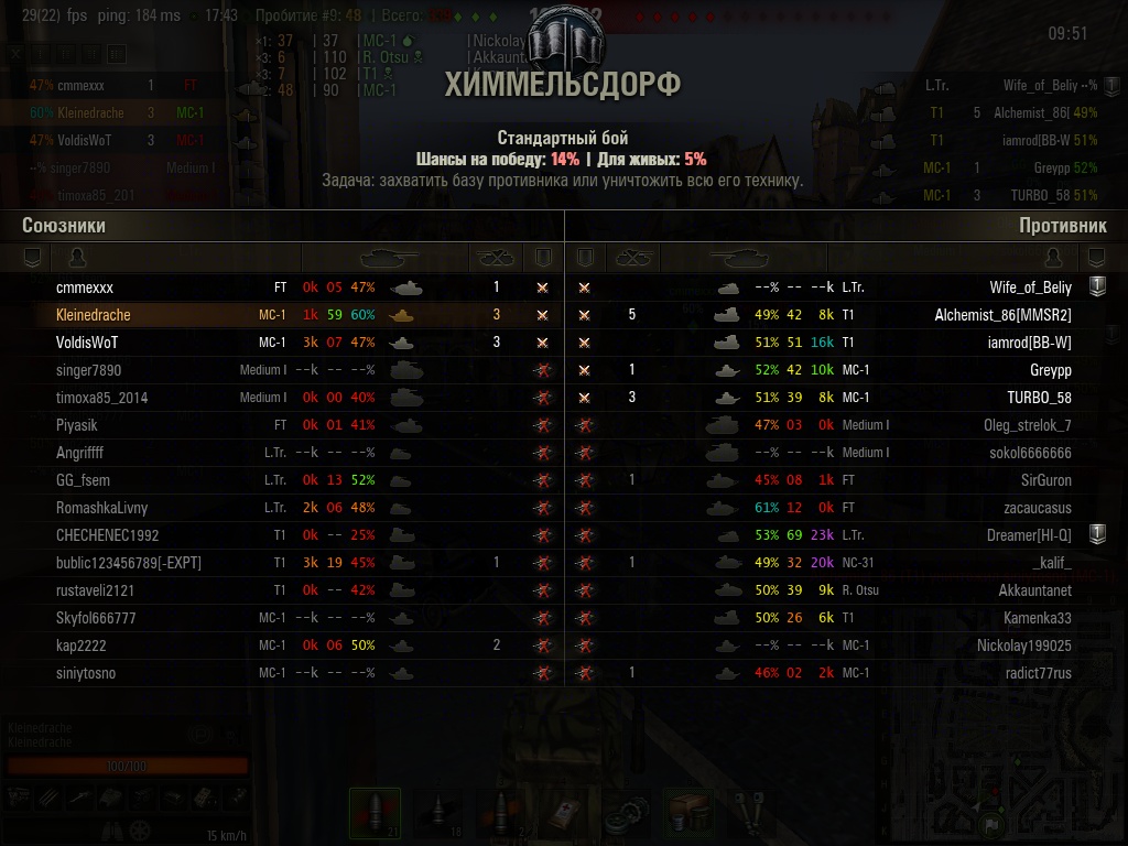 grig54 Опубликовано: 11 июня, 2014 Игроки 6 228 публикаций 49 354 боя Поделиться Опубликовано: 11 июня, 2014 (изменено) 11 Июн 2014 - 06:06 пользователь next99999 сказал:Всегда по 200-250 урона? Таки я не пойму кто из вас врёт - твоя статистика со средним уроном 180 за 9к+ боёв, или ты?А доказывать ничего и не надо - всё давным давно уже доказано - лучшее орудие для МС-1 это пушка 45-ка, и это подтверждает подавляющее большинство на МС-1 играющих здесь. Ну а кол-во Дозорных тут вообще не в тему , ибо такое кол-во Дозорных с таким же успехом можно взять и играя с 45-й.Смотря какой бой, но обычно если сразу не убили то 200-250 урона несложно. Если Дозорный в Малиновке или Провинции то урон очень низок или вообще равен нулю, а опыта много. Так как за засвет опыта дают поболее чем за урон.Из 9к боев наверно 6-7к это с 45мм. То есть этот средний урон скорее заслуга 45мм чем ТНШ. Кем и чего доказано насчет орудия я не знаю. Доказательства проверены и признаны не совсем корректными. Еще зависит от манеры боя. К ТНШ надо привыкнуть и руки перезаточить. Понятие лучше-хуже к орудию МС-1 неприменимы вообще (от слова совсем). Совсем разная игра. Я пару месяцев на пулемет переучивался. Например: Малиновка. С пушкой надо стрелять издалека и по чужому засвету. С ТНШ наоборот сокращать расстояние, так как 350м предельное расстояние стрельбы . Даже на Т1с пулеметом играть надо по другому чем на МС-1 с ТНШ.===============Эксперименты проводить бесполезно. МС-1 с ТНШ и МС-1 с 45мм это разные танки. Реплеи есть, но патч новый. Будут.===============Тут неоднократно посты появляются. Игрок решил проверить как с ТНШ. Пару боев поездил. Резюме: не пробивает, не попадает, издалека не постреляешь. Т18 не убьешь. Н35 не убьешь. И т.д. и т.п. Для того чтобы оценить надо покататься пару месяцев. И не по одному бою в день. Если включить мозг то всё пробивается, Т18 убивается прекрасно, Н35 убивается и прочие. Гоча почти не убивается, но их не видно в боях.Зато фан. Т18 видит что у тебя пулемет и несется за легким фрагом. Получает очередь и в ангар. Особенно хорошо против Т1 в Химках. Изменено 11 июня, 2014 пользователем grig54 −−−• − −−− −• •− −−−− •− •••− •• −−•• −• −••− ••−−•• •• −−• •−• •− Фортуна любит смелых, а ВБР красных. ВЕРНИТЕ ПРОВИНЦИЮ-положите туда откуда взяли!!! Враг хитер и коварен. Огонь Провел на курортах Банландии 190 дней Ссылка на комментарий Поделиться на других сайтах Другие способы поделиться...