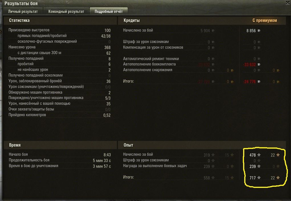grig54 Опубликовано: 11 июля, 2014 Игроки 6 228 публикаций 49 354 боя Поделиться Опубликовано: 11 июля, 2014 (изменено) 11 Июл 2014 - 14:07 пользователь FOXok сказал: то бишь в реале получится опыт х3,5?х4+ (+ если еще и лтр или другого немца грохнешь). Можно самому проверить. Сколько было минус сколько стало. Изменено 11 июля, 2014 пользователем grig54 −−−• − −−− −• •− −−−− •− •••− •• −−•• −• −••− ••−−•• •• −−• •−• •− Фортуна любит смелых, а ВБР красных. ВЕРНИТЕ ПРОВИНЦИЮ-положите туда откуда взяли!!! Враг хитер и коварен. Огонь Провел на курортах Банландии 190 дней Ссылка на комментарий Поделиться на других сайтах Другие способы поделиться...