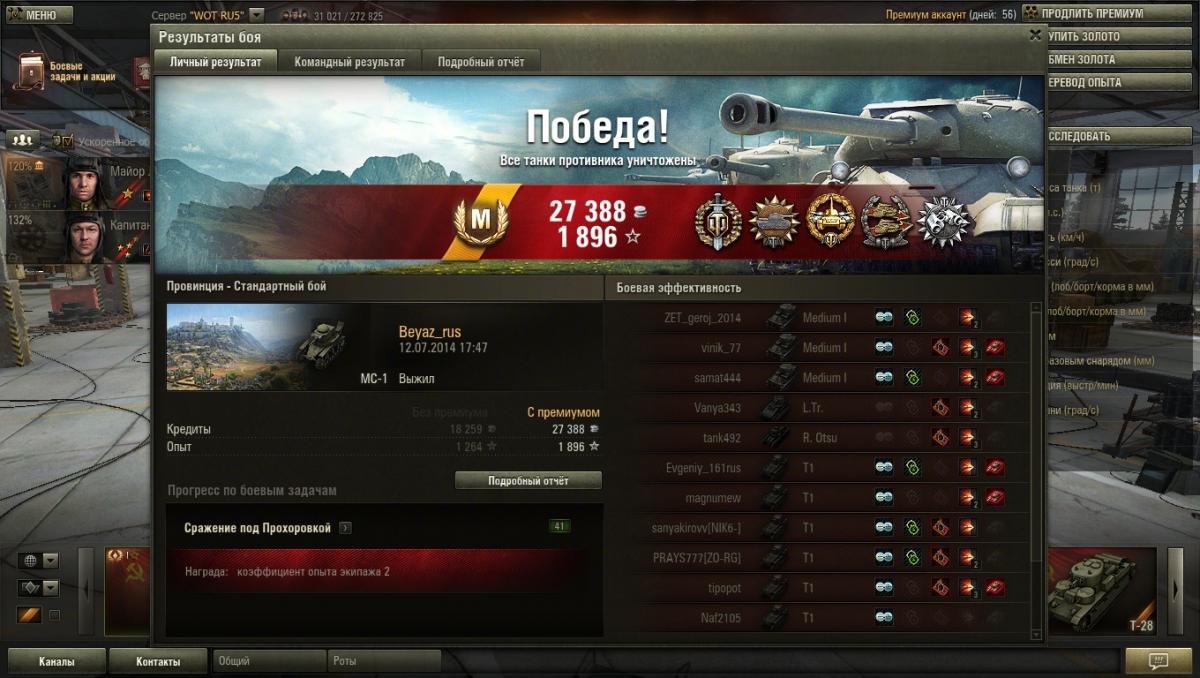 grig54 Опубликовано: 11 июля, 2014 Игроки 6 228 публикаций 49 354 боя Поделиться Опубликовано: 11 июля, 2014 11 Июл 2014 - 11:40 пользователь DDOS_ATAKA сказал:Акция «Сражение под Прохоровкой» Отстающий получает х4+ при исполнении всех условий. Мне только в одном бою немчуру не удалось убить. −−−• − −−− −• •− −−−− •− •••− •• −−•• −• −••− ••−−•• •• −−• •−• •− Фортуна любит смелых, а ВБР красных. ВЕРНИТЕ ПРОВИНЦИЮ-положите туда откуда взяли!!! Враг хитер и коварен. Огонь Провел на курортах Банландии 190 дней Ссылка на комментарий Поделиться на других сайтах Другие способы поделиться...