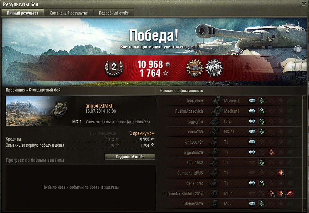 RenamedUser_31455584 Опубликовано: 18 июля, 2014 Игроки 15 публикаций 2 933 боя Поделиться Опубликовано: 18 июля, 2014 17 Июл 2014 - 16:24 пользователь grig54 сказал:http://www.wio.ru/strat/wot-exp.htmСвой средний опыт за бой знаем. Калькулятор в руки и узнаем потребное количество боев. Учитывая то что на МС-1 два члена экипажа и если танк элитный то экипаж качается относительно быстро. Спасибо за таблицу, жаль, что она не попалась мне раньше. Можно было избежать некоторых ошибок. Учту при выкачивания навыков экипажа у других веток и наций. Сейчас вижу, что выкачивать навыки у экипажа на начальных уровнях не совсем выгодно и долго, как было у меня.Подкупает 100% экипаж. Ссылка на комментарий Поделиться на других сайтах Другие способы поделиться...