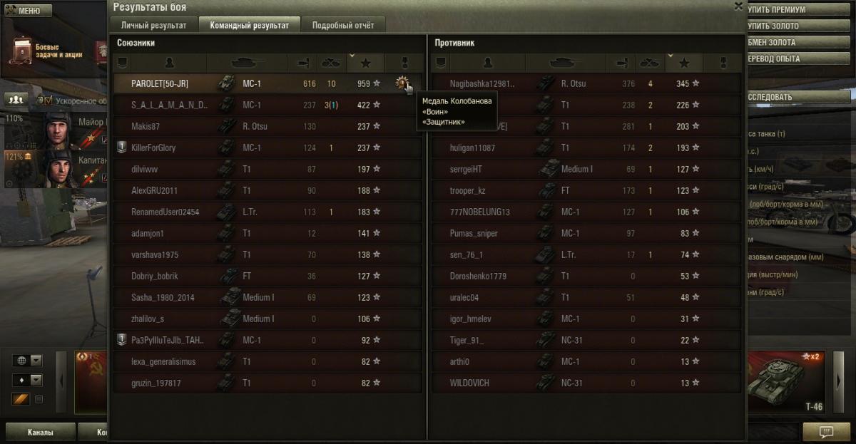 grig54 Опубликовано: 23 июля, 2014 Игроки 6 228 публикаций 49 354 боя Поделиться Опубликовано: 23 июля, 2014 (изменено) Как-то Kohlenklaw спрашивал как быть если Т1 быстро летят вдоль озера утопленников в Малиновке и пытаются зайти во фланг. С пушкой никак с ТНШ вот так:http://cdn-frm-eu.wargaming.net/wot/ru/uploads/monthly_07_2014/post-10607293-0-94529400-1406133012_thumb.jpg три ближних это мои. К первому еле успел. Пришлось вблизи добивать. 9к, 14к и 24к боев у них. То есть не новички.А это подтверждение того что на фланге я был один:http://cdn-frm-eu.wargaming.net/wot/ru/uploads/monthly_07_2014/post-10607293-0-03657400-1406133077_thumb.jpg Изменено 23 июля, 2014 пользователем grig54 2 −−−• − −−− −• •− −−−− •− •••− •• −−•• −• −••− ••−−•• •• −−• •−• •− Фортуна любит смелых, а ВБР красных. ВЕРНИТЕ ПРОВИНЦИЮ-положите туда откуда взяли!!! Враг хитер и коварен. Огонь Провел на курортах Банландии 190 дней Ссылка на комментарий Поделиться на других сайтах Другие способы поделиться...