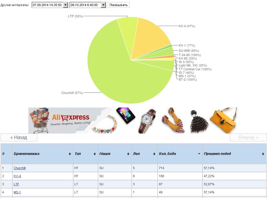 grig54 Опубликовано: 9 октября, 2014 Игроки 6 228 публикаций 49 354 боя Поделиться Опубликовано: 9 октября, 2014 (изменено) 09 Окт 2014 - 13:29 пользователь Malchik_Nagibalchik сказал: Какая постыдная ложь...9544 боя на МС-1 делим в среднем на 2 боя "за сессию" получаем 4772делим на количество дней в году 365 (при условии что играешь каждый день).получаем что ты играешь уже 13 лет. И это еще не считая других аккаунтов которые у тебя есть. Генератор ДВ перезагрузи. Глюкнул.http://www.noobmeter.com/player/ru/grig54/12884265/Выбираем период, количество боев делим на количество дней и видим сколько боев приходится на танк МС-1 в среднем за день. И если я пишу 1-3 боя в день это значит например за последний месяц или три месяца, то есть какой-то вменяемый аериод. Но год назад не 1-3 боя в день было на МС-1, гораздо больше. Я доступно объяснил?http://cdn-frm-eu.wargaming.net/wot/ru/uploads/monthly_10_2014/post-12884265-0-56300300-1412854881_thumb.jpg Например сентябрь-октябрь Изменено 9 октября, 2014 пользователем grig54 −−−• − −−− −• •− −−−− •− •••− •• −−•• −• −••− ••−−•• •• −−• •−• •− Фортуна любит смелых, а ВБР красных. ВЕРНИТЕ ПРОВИНЦИЮ-положите туда откуда взяли!!! Враг хитер и коварен. Огонь Провел на курортах Банландии 190 дней Ссылка на комментарий Поделиться на других сайтах Другие способы поделиться...