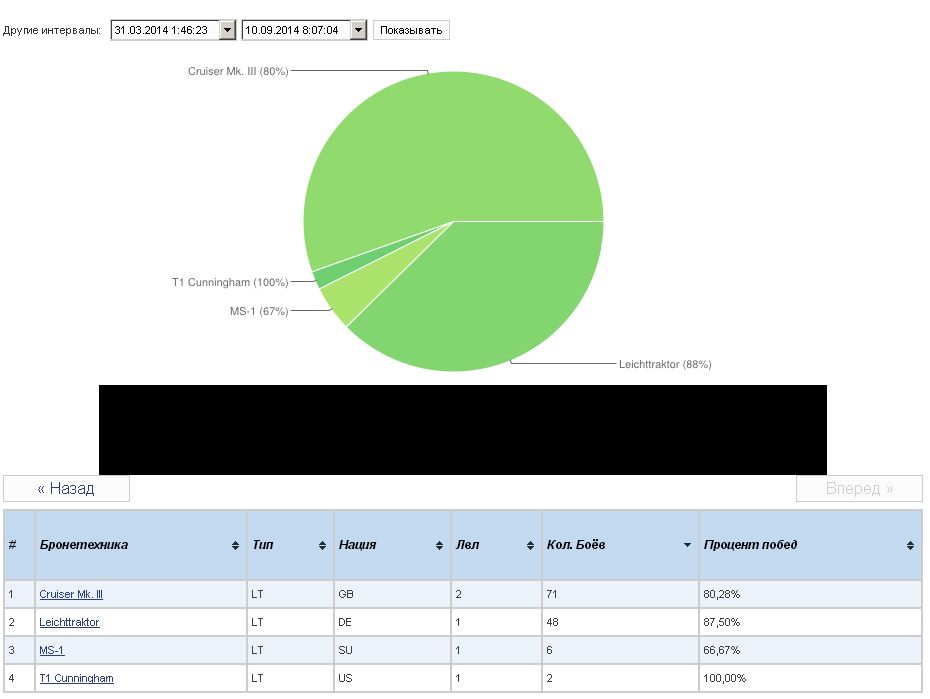 RenamedUser_17797304 Опубликовано: 9 октября, 2014 Игроки 4 161 публикация 4 328 боёв Поделиться Опубликовано: 9 октября, 2014 (изменено) 09 Окт 2014 - 16:21 пользователь grig54 сказал:Причем перечень этих танков довольно ограничен. Например для 1-го уровня это МС-1, Т-1. Это танки на которых играет довольно большое количество игроков имеющих танки более высоких уровней. По разным причинам (поднять пп, нравится танк и т.д.). 4. "Короли" в боях почти отсутствуют. 1-2 в команде по праздникам. 4. Да показатель. Год назад их было гораздо больше. А какие взвода выезжали на тогда еще тракторах. Сказка. Адреналин зашкаливал. Становится абсолютно проходным танком. . Опять твои фантазии которые тебе бы хотелось видеть. А вот реальность: # Бронетехника Нация Битвы (недавние) %П (недавний) %П игрока (недавний) "Имба" рейтинг танка "Имба" рейтинг танка (Плохой игрок) "Имба" рейтинг танка (Хороший игрок) Битвы (общие) %П (Общий) Leichttraktor DE 125k 58,2% 52,5% 679 589 723 3 228k 58,6% MS-1 SU 73k 56,6% 52,8% 648 596 678 1 848k 58,0% RenaultFT FR 12k 52,8% 51,4% 619 581 639 128k 52,1% Renault NC-31 CN 14k 54,5% 51,9% 636 536 676 230k 54,1% T1 Cunningham US 410k 55,9% 52,9% 656 598 692 4 609k 55,3% Renault Otsu JP 44k 53,8% 52,4% 653 641 673 181k 53,3% Григ, у тебя хватит мужества признать что я прав, а ты ошибаешься?Или очередной минус за пост? Изменено 9 октября, 2014 пользователем Malchik_Nagibalchik 3 Как сделать бои конкурентным? In pace leones, in proelio cervi Ссылка на комментарий Поделиться на других сайтах Другие способы поделиться...