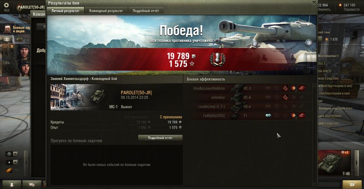 PAROLET Опубликовано: 9 октября, 2014 Игроки 8 400 публикаций 207 968 боёв Поделиться Опубликовано: 9 октября, 2014 (изменено) Всем привет!Провёл хорошо вечер в режиме командного боя. Прокачал здорово экипаж. Погонял по Прохоровке АМХ13-90 в одном из боёв.И завершил эту серию боёв триумфом - спалил ИС-3 в Химках.http://cdn-frm-eu.wargaming.net/4.2/style_emoticons/wot/Smile_Default.gif Но сначала пробил торсионы ему и загуслил.http://cdn-frm-eu.wargaming.net/4.2/style_emoticons/wot/Smile_justwait.gifhttp://wotreplays.ru/site/3809716#zimniy_himmel_sdorf-parolet-ms-1 Изменено 9 октября, 2014 пользователем PAROLET 13 Aut cum scuto, aut in scuto! Ссылка на комментарий Поделиться на других сайтах Другие способы поделиться...