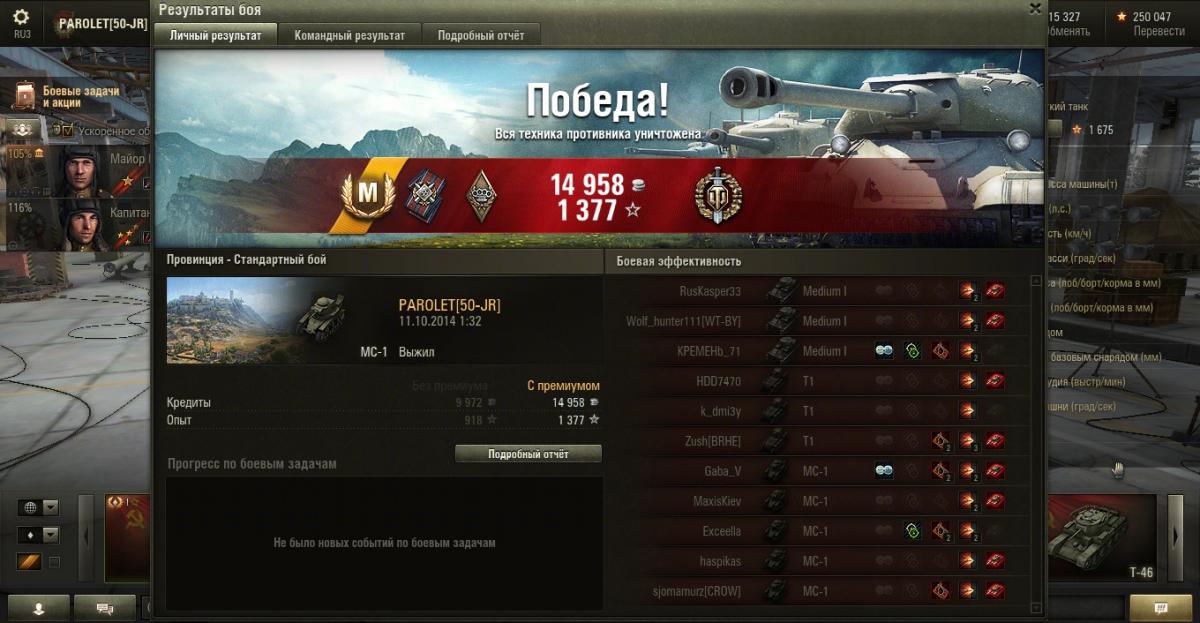 kin_2007 Опубликовано: 12 октября, 2014 Игроки 2 193 публикации 174 225 боёв Поделиться Опубликовано: 12 октября, 2014 12 Окт 2014 - 10:51 пользователь Malchik_Nagibalchik сказал:Кстати, вопрос МСникам, зачем PAROLET возит 24 голды если по вашим словам МС-1 пробивает всех без проблем? Многовато конечно, но не исключено, что не разгрузился с командных боев, а так 10 за глаза хватает (сам вожу 8 штук). 1 Экипаж МС купит домик в Провинции или участок в Малиновке, желательно в районе водоема, дорого, до неприличия дорого. Ссылка на комментарий Поделиться на других сайтах Другие способы поделиться...