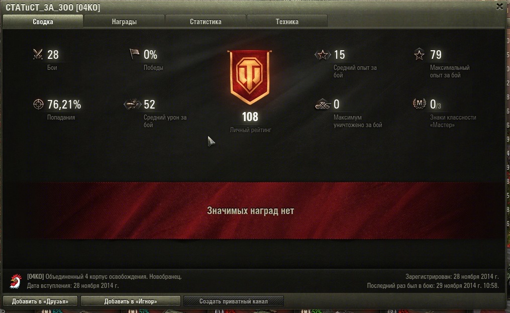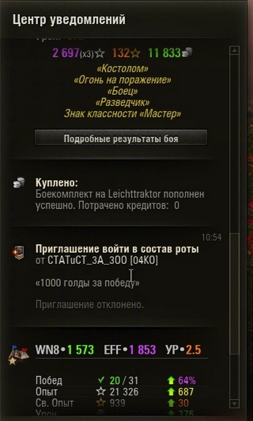 CBETuK_879 Опубликовано: 29 ноября, 2014 Игроки 446 публикаций 8 843 боя Жалоба Поделиться Опубликовано: 29 ноября, 2014 28 Ноя 2014 - 08:40 пользователь figvam_vsem131 сказал: И, похоже, на смену забаненному "Очку" новые приходят. Очень подозрительно: http://ru.wargaming.net/clans/138859/ Не новый ли "Очко" стряпают?Оказывается ОЧКО и не забанили. Странно?Сегодня после боя на МС-1 получила вот такое предложение от негого "Статиста". Уж лучше, когда тебя упорно разглядывают, чем когда тебя не видят в упор. Ссылка на комментарий Поделиться на других сайтах Другие способы поделиться...