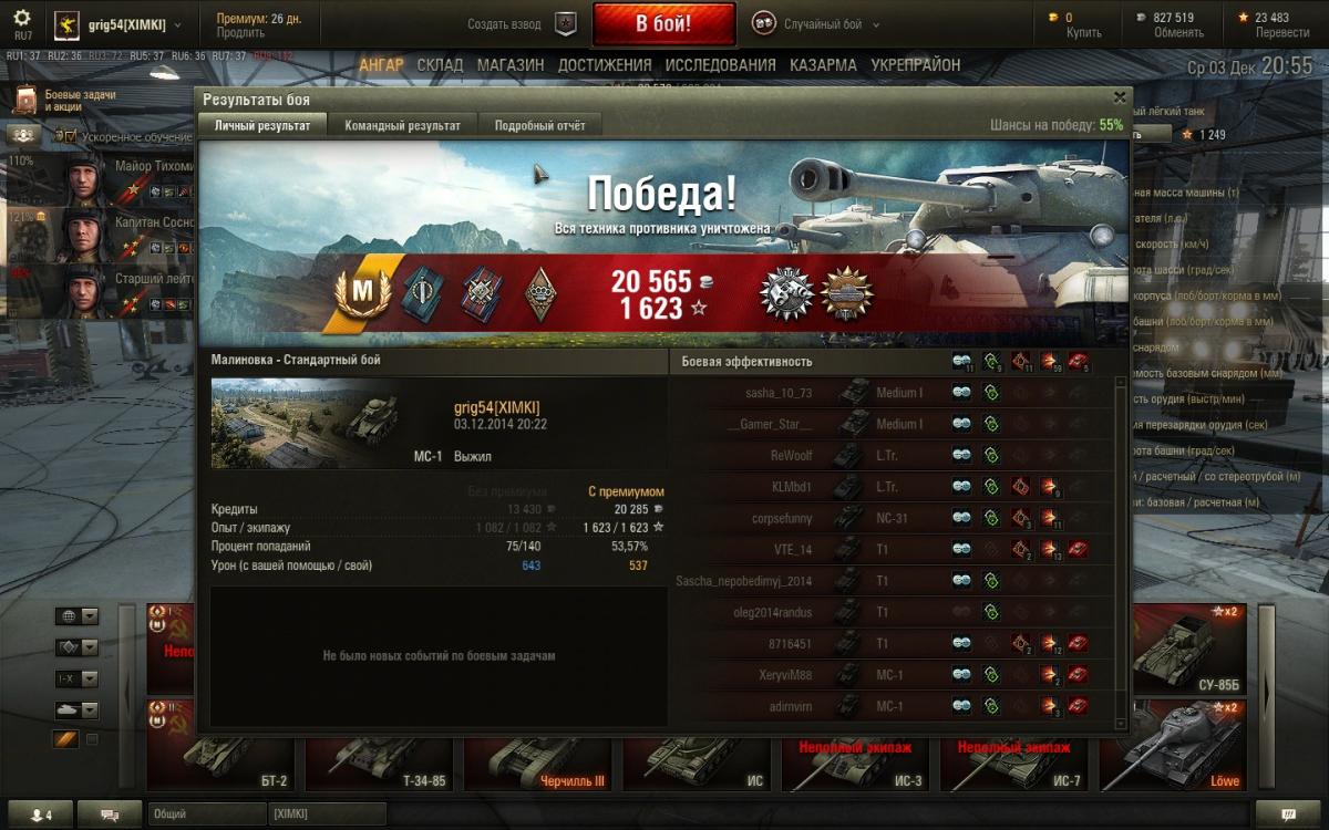 Lord_Taira Опубликовано: 3 декабря, 2014 Игроки 407 публикаций 56 745 боёв Жалоба Поделиться Опубликовано: 3 декабря, 2014 (изменено) 03 Дек 2014 - 21:57 пользователь grig54 сказал:Мастер за 495 чистого опыта. А на прошлой неделе мне за 500 только 1-й класс давали.http://forum.worldoftanks.ru/index.php?/topic/61468-%d0%bc%d1%81-1/page__st__34920__pid__34947300#entry34947300==================================Не так часто на МС-1 больше 1000 чистого опыта получаешь:http://cdn-frm-eu.wargaming.net/wot/ru/uploads/monthly_12_2014/post-12884265-0-04245700-1417632975_thumb.jpg По разному бывает :) Но тут 495 опыта на сливе, настрел-то хороший был...А с тысячей опыта искренне поздравляю, так держать :) Сколько был, если не секрет, в этом бою собственный настрел? Изменено 3 декабря, 2014 пользователем Lord_Taira Ссылка на комментарий Поделиться на других сайтах Другие способы поделиться...