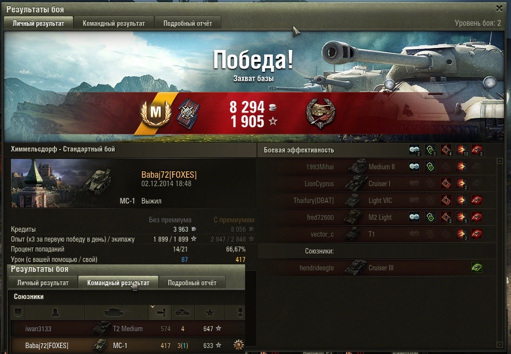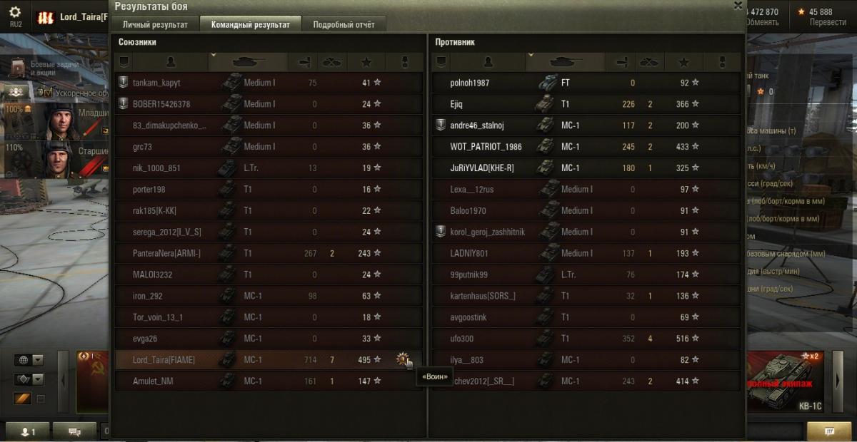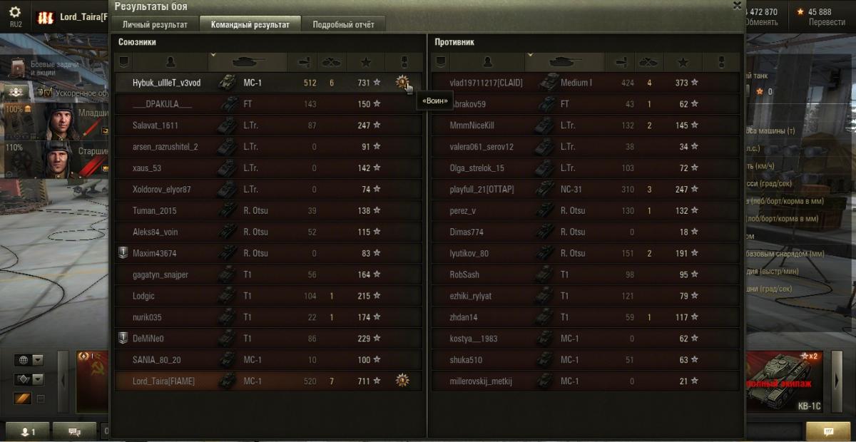 Lord_Taira Опубликовано: 3 декабря, 2014 Игроки 407 публикаций 56 745 боёв Жалоба Поделиться Опубликовано: 3 декабря, 2014 (изменено) То, что МС-1 на первом уровне классный танк, сомнений нет. Один из мастеров. Как не пытался тащить, но бой проиграли. Больше всего добило то, что 2/3 команды слились с нулевым уроном... Еще один из примеров, что МС-1 тащит.На этот раз победа, благодаря Hybuk_uIIIet_v3vod. Тянули с ним вдвоем весь бой (без взвода).Я слился почти в конце боя, промазав по возможному 8 фрагу с 8 хп, поторопился с выстрелом. Нефиг жадничать :) Hybuk_uIIIet_v3vod - просто молодец, добрал оставшихся трех врагов, очень грамотно сыграв тактически и не промазав на последнем. За что ему огромный респект и уважуха :) Изменено 3 декабря, 2014 пользователем VanVicious Ссылка на комментарий Поделиться на других сайтах Другие способы поделиться...