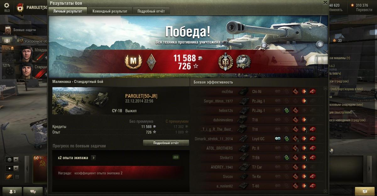 Попал на неё 6 раз, 5 на СУ-18 и 1 на БТ-7. Одно слитие на СУ-18 и пять побед со слитием противника. Бои по 2-3 минуты.