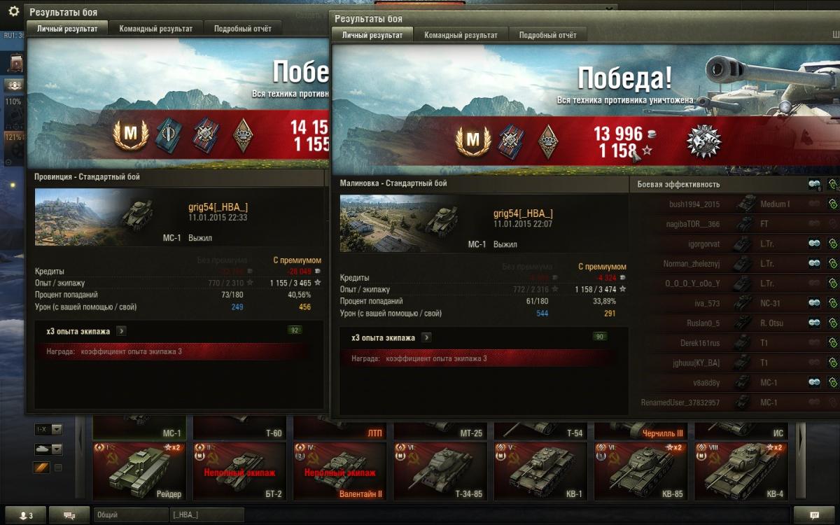 grig54 Опубликовано: 11 января, 2015 Игроки 6 228 публикаций 49 354 боя Поделиться Опубликовано: 11 января, 2015 (изменено) Точно, на первом скрине нет трубы, а на втором есть. Но у меня обзор без трубы 308 метров, а до него 303. Хотя камуфляж-маскировка могли повлиять.Всё равно реакция неадекватная.http://cdn-frm-eu.wargaming.net/wot/ru/uploads/monthly_01_2015/post-12884265-0-45764900-1421008364_thumb.jpg===============Новогодние бои, Зимняя битва. 3000+ опыта и на МС-1 можно заработать. Зато глаза целее и музыка 8-битная на мозги не давит да и квадратные снежинки не видишь:http://cdn-frm-eu.wargaming.net/wot/ru/uploads/monthly_01_2015/post-12884265-0-51224300-1421009569_thumb.jpgПо опыту получается примерно то же, если уже отыграл 125 боев. Ведь и на Рейдере и с 0 опыта бывает. И не так уж редко. Правда по серебу печально, но глаза дороже. А с 45мм пушкой и по серебру всё хорошо. Изменено 11 января, 2015 пользователем grig54 −−−• − −−− −• •− −−−− •− •••− •• −−•• −• −••− ••−−•• •• −−• •−• •− Фортуна любит смелых, а ВБР красных. ВЕРНИТЕ ПРОВИНЦИЮ-положите туда откуда взяли!!! Враг хитер и коварен. Огонь Провел на курортах Банландии 190 дней Ссылка на комментарий Поделиться на других сайтах Другие способы поделиться...