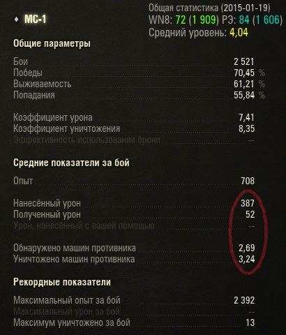 TES_EidEnuard Опубликовано: 23 января, 2015 Игроки 1 715 публикаций 5 313 боёв Поделиться Опубликовано: 23 января, 2015 23 Янв 2015 - 19:28 пользователь Zongi сказал: Хороших результатов интересно добиваться там, где не каждый сможет.Как тебе, например, такая статистика по МС-1? (Этот игрок когда-то ещё утверждал, что видел и лучше.) http://cdn-frm-eu.wargaming.net/wot/ru/uploads/monthly_01_2015/post-6633688-0-78952600-1422030196_thumb.jpg После Трактора скорость сведения на МС-1 действительно напрягает, а вот точность у них одинаковая. ну у меня чуточку ниже циферки за короткое количесвто боёв - 350+ среднего урона на моське, а вот с уничтоженными - печаль беда. сведение жутко долгое, честно говоря, напрягает, точность никакая, больше влияние ВБР и стрельба на 1-2-3 и обзор, после ЛТР, где попадая на провинцию светишь большую часть карты - печаль конкретнаяНа ЛТР бы покатал. но там 92% первого перка. хочется радиоперехват наконец вкачать. потом будет избиение младенцев что на малиновке, то и на ПровинцииА вот так влиять на исход боя на моське невозможно. даже доп паёк и +5% (ОГ и РП) и + ББ с вентиляцией всё равно не доведут до 400+ обзора с трубой Ссылка на комментарий Поделиться на других сайтах Другие способы поделиться...