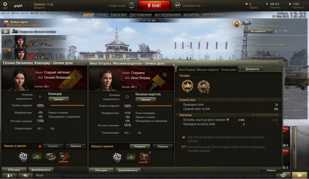 next99999 Опубликовано: 21 февраля, 2015 Игроки 3 397 публикаций 14 160 боёв Поделиться Опубликовано: 21 февраля, 2015 21 Фев 2015 - 12:14 пользователь grig54 сказал:Если прокачивать по принципу один экипаж- один танк, тогда либо никогда не прокачаешь до 4-х перков экипаж, либо от постоянной игры на одном и том же танке тошнить от него начнет. Причем играть же хочется на разных танках, переходишь с уровня на уровень. Какие-то танки продаешь, какие-то танки покупаешь. Больше 10-15 прокачиваемых танков смысла держать в ангаре нет. Один процесс сбивания звезд уже начинает напоминать обязаловку. Поэтому экипажи и пересаживаюся. На некоторых танках(прем) экипажи качаются быстрее, они используются как учебка. На танках где 2 члена экипажа можно гораздо быстрее прокачать командира и мехвода (основные), чем на танке с 5 членами экипажа. Например на таке 5-ю экипаж имеет 3 перка к 2.6к боев. За это количество боев я на МС-1 до 3.5 перка прокачал бы 2 экипажа. Хороший и честный ответ - спасибо. Если я правильно понял, - то от МС-1 тошнить начинает после выкачки 4-х перков? УДАЛИТЕ МИТТЕНГАРД, ВЕРНИТЕ ПРОВИНЦИЮ, верните малиновку в "песок" Ссылка на комментарий