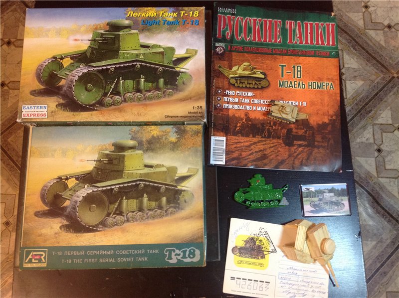 Пока что такая коллекция набралась. Что-то купил сам, что-то подарили соклановцы, что-то родственники. Два варианта коробок с моделями (существует ещё украинский, но по вменяемой цене не нашёл), два магнитика - пластиковый и бамбуковый, журнал с игрушкой, специздание от Армады, игрушка-имитация советской, да конвертик (есть два - один использованный, второй чистый, так и не решил, какой лучше). Моделька внизу делалась на первый конкурс спичкотанков (о котором я узнал всего за пару дней, будучи без каких-либо инструментов) и потом была окончательно разобрана, ибо делал на глазок, по мотивам. Потом с масштабом определюсь(ибо плавает сильно) и переделаю по-нормальному.
