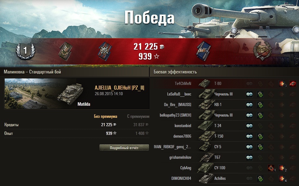 AJIELLIA_OJIEHuH Опубликовано: 11 сентября, 2015 Игроки 3 673 публикации 51 084 боя Поделиться Опубликовано: 11 сентября, 2015 (изменено) 11 Сен 2015 - 18:08 пользователь JI0T0C сказал: Алешенька, не придирайся к словам, знаю я за что дают Рейдера.А вот твой триколор вполне реально получить. Но не на Митенгарде. Потому как и Дозорного ты там не получишь. А я и не про миттегранд. У тебя еще есть шанс попасть на малиновку (взял там рейдера на матильде с переученным экипажем от крузера, чуть чуть не хватило при этом на дозорного и разведчика одновременно, против 6к...) пока её не удалили, да и много ещё карт где рейдер берётся.-----------зы. миттегранд мне нравится.откатаю акцию на е25, взвод пзшек там будет всё аннигилировать - благо оттуда удалили 3лвл...Рай для пулеметчиков... Изменено 11 сентября, 2015 пользователем AJIELLIA_OJIEHuH game over Ссылка на комментарий Поделиться на других сайтах Другие способы поделиться...