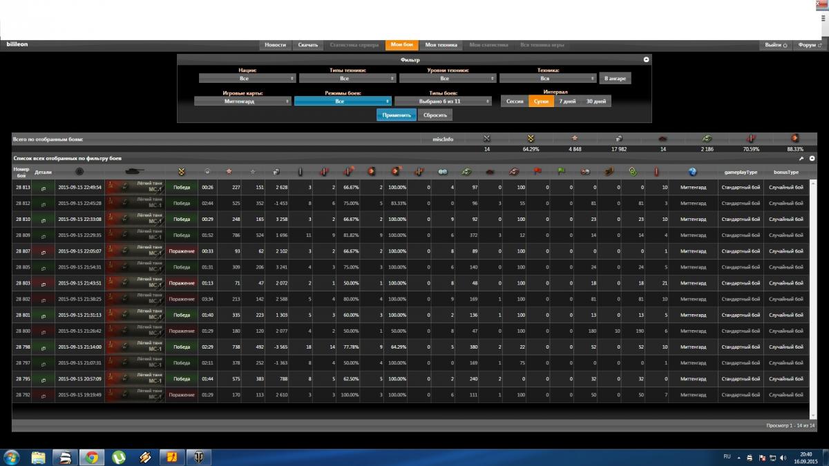 _Baker Опубликовано: 15 сентября, 2015 Игроки 1 168 публикаций 45 265 боёв Поделиться Опубликовано: 15 сентября, 2015 (изменено) 15 Сен 2015 - 18:33 пользователь A_P_Maddoc сказал: Бедные маленькие десяточки, так страдают от злобых восьмёрок и девяток, аж жалко их. Или их всегда против Абрамсов ставят? А может ... нет, не верю ... их кидает против таких же по ТТХ, как и они сами (ну и, заодно, слабейших досыпают)? Так против равных (и слабейших) - это жёстче некуда? Вот уж восьмёркам повезло, им хоть оторваться можно с мелочью на пару уровней выше...То ли дело - на злобном перкованном Мосе обижать картонных Т18 да слоупоков БТ-2. Можно даже не сходя с базы валить их пачками, а они и не поймут, что же их убило.Ну да, лучше ерничать когда аргументов нет.Когда МоСю кидало к тройкам при обычной игре?Что-то я смотрю почти никто из здешней темы на 10 лвл геройством похвастать не может, а песке пожалуйста.Отчего бы это?Это же легко, восьмерок на десятке гнуть, легче чем в песке на МоСе против "картонных Т18 да слоупоков БТ-2." которые даже выше уровнем.Припоминаю перлы из серии, что скилованным взводом в песке, гораздо сложнее играть чем соло.Из этой же песни.http://cdn-frm-eu.wargaming.net/wot/ru/uploads/monthly_09_2015/post-2962553-0-08865800-1442344284_thumb.jpgТы где там равных-то увидел?Легко пи...ть, когда там не был. 2 взвод у соперника не дисбалансный, нэ?:шансы 29 Изменено 15 сентября, 2015 пользователем _Baker Вернете Провинцию, начну играть. Ссылка на комментарий Поделиться на других сайтах Другие способы поделиться...