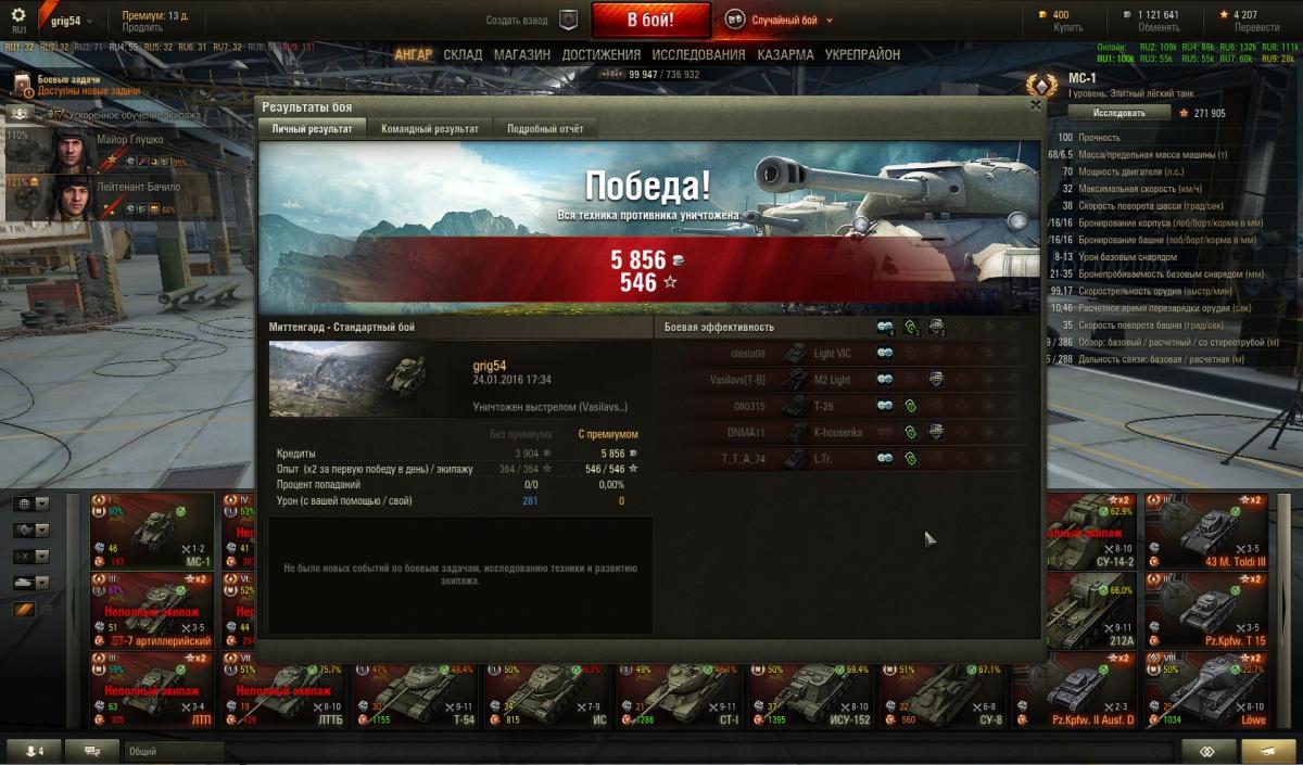 RenamedUser_26294993 Опубликовано: 24 января, 2016 Игроки 197 публикаций 140 боёв Поделиться Опубликовано: 24 января, 2016 24 Янв 2016 - 15:44 пользователь grig54 сказал:Попробовал. На МС-1 попал в митькояму. Точнее не смог туда зайти. Но победил и даже кого-то насветил. Связь с сервером потеряна сказали. Но занял почетное 10-е место по итогам боя. http://cdn-frm-eu.wargaming.net/wot/ru/uploads/monthly_01_2016/post-12884265-0-55228700-1453650282_thumb.jpg Это ты, Григ? 10-е место почётное? ....................................Да ладно - походу у меня чёто с ЧЮ не в порядке в последнее время удалите МИТТЕНГАРД, ВЕРНИТЕ ПРОВИНЦИЮ ОБРАТНО, И МАЛИНОВКУ для "песка" Ссылка на комментарий Поделиться на других сайтах Другие способы поделиться...