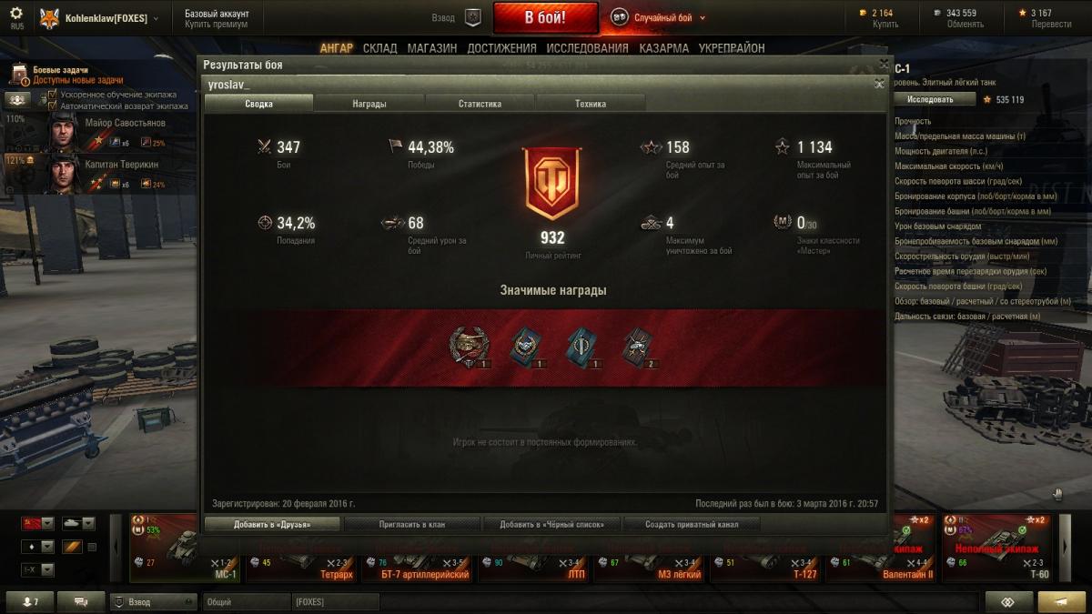 Kohlenklaw Опубликовано: 5 марта, 2016 Игроки 3 484 публикации 39 763 боя Жалоба Поделиться Опубликовано: 5 марта, 2016 Свежий, только что из печки, скриншот, который кратко и ёмко характеризует моё отношение к пафосным крикам, вроде "брелок вместо того танка, то на 15 месте в списке, обуза для команды".По-моему, такие команды и безо всяких брелоков сами себе отличная обуза...http://cdn-frm-eu.wargaming.net/wot/ru/uploads/monthly_03_2016/post-1553225-0-16559400-1457165473_thumb.jpg Вообще, надо сказать, что те, кто чаще всего орёт про "обузу", "подставу" и прочее в основной массе сами те ещё игроки.Вот, чисто за позавчерашний (вчера не играл) день скрины тех, кто с пеной у рта в течение дня меня убивал или в меня стрелял. http://cdn-frm-eu.wargaming.net/wot/ru/uploads/monthly_03_2016/post-1553225-0-53298200-1457165589_thumb.jpghttp://cdn-frm-eu.wargaming.net/wot/ru/uploads/monthly_03_2016/post-1553225-0-70214200-1457165590_thumb.jpghttp://cdn-frm-eu.wargaming.net/wot/ru/uploads/monthly_03_2016/post-1553225-0-21957300-1457165592_thumb.jpghttp://cdn-frm-eu.wargaming.net/wot/ru/uploads/monthly_03_2016/post-1553225-0-32527700-1457165593_thumb.jpgПрекрасные игроки, не правда ли? И таких среди вопителей и тимкиллеров - подавляющее большинствоА теперь - небольшая загадка.Если мой МС-1 - "обуза и подстава" для команды, то почему у меня на нём процент побед стабильно в районе 52-54, а у огромной кучи игроков процент побед даже не то, что 50 (что свидетельствует о нулевом вкладе в бой: ибо при отсутствии личных факторов всё стремится к равновесию), а ниже (встречал даже индивидуума с 37%), при том, что они играют на технике, которая "не "обуза и подстава""?Даже если предположить, что им на какой-то технике не везёт или не даётся она им (ну, бывает такое, бывает), то уж чисто за счёт другой техники стата в плюс должна выходить. И, чтобы совсем не уходить в оффтоп, ещё один скриншот из боя с двумя МС-1 на 5 уровне.http://cdn-frm-eu.wargaming.net/wot/ru/uploads/monthly_03_2016/post-1553225-0-67228700-1457166199_thumb.jpgТанки 3-4-5 уровней живучей, чем МС-1. У них обзор больше, чем у МС-1. Брони немножко или множко больше, чем у МС-1. Орудия точнее и мощнее, ем у МС-1. Если смотреть чисто на циферки стартовых условий, то МС-1 якобы подстава и обуза для команды. Вот только скажите мне, с какого перепугу тогда МС-1 по итогам боя стоят в топе по урону, обгоняя кучу этих "лучших танков"?Нет, вы не подумайте, что я бецкера спрашиваю (с ним ведь невозможен конструктивный разговор, да и он ведь меня в игнор добавил - ведь для него же так приятно поливать кого-то грязью в одни ворота), я спрашиваю вас, остальные. Мне интересно, то думаете по этому поводу вы? 8 Предложение по запуску альтернативной версии игры для любителей классического геймплея: тыц Ссылка на комментарий Поделиться на других сайтах Другие способы поделиться...