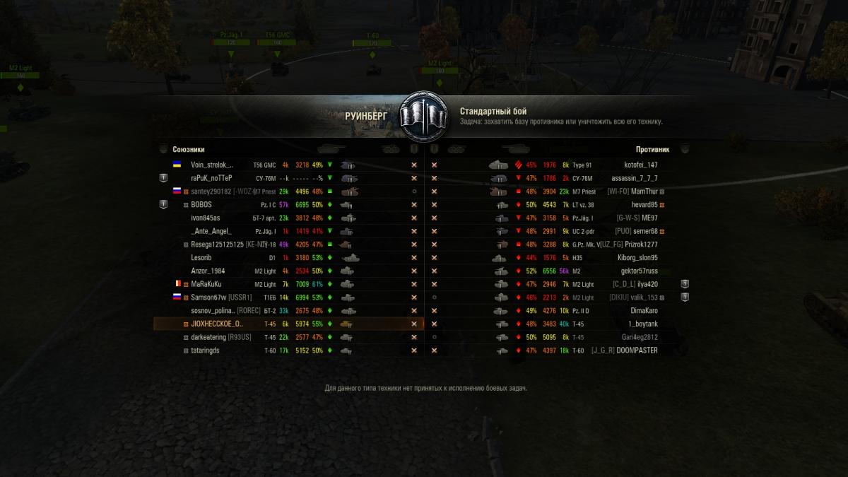 JIOXHECCKOE_O3EPO Опубликовано: 29 ноября, 2016 Игроки 2 859 публикаций 36 058 боёв Жалоба Поделиться Опубликовано: 29 ноября, 2016 (изменено) Не знаю что произошло, волна банов что-ли всех напугала и все рванули в песок без запретных модов.Но таких жёстких зарубов я неделю уже не видел. Успеваешь сделать два выстрела (не миттегранд) и всё.Либо победа, либо поражение. Несчастный руинберг и то 3-4 минуты играется http://cdn-frm-eu.wargaming.net/wot/ru/uploads/monthly_11_2016/post-11294084-0-98290600-1480445144_thumb.jpgПоловина не разу не нубы.Были команды вообще сплошные статисты. Аж 90% на победу писало. Ну или 12%.Это я про, что что оказывается песок не до конца убит. Изменено 29 ноября, 2016 пользователем JIOXHECCKOE_O3EPO Мой давний скромный Колобанов на ещё не понерфленном танке https://www.youtube.com/watch?v=pa9mrBpxQ2M Ссылка на комментарий Поделиться на других сайтах Другие способы поделиться...