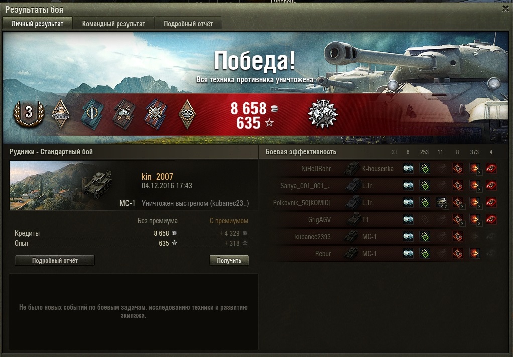 kin_2007 Опубликовано: 3 декабря, 2016 Игроки 2 193 публикации 174 100 боёв Жалоба Поделиться Опубликовано: 3 декабря, 2016 03 Дек 2016 - 16:31 пользователь Gratter сказал:А я вот хочу выступить в защиту Миттенгарда, тем более МС - мой самый часто юзаемый танк.Потому что только на Миттенгарде вот такая вот канитель может быть? Естественно, когда начался бой все уже были сведены на этих парней и все упиралось только в скорость перезаряда. А так Миттенград славится тем, что там Разведчики капают, фактически, за просто так и очень часто. Наблюдал даже, как МС Колобанова брал в этой яме и сам частенько Захватчиков получал. Экипаж МС купит домик в Провинции или участок в Малиновке, желательно в районе водоема, дорого, до неприличия дорого. Ссылка на комментарий Поделиться на других сайтах Другие способы поделиться...