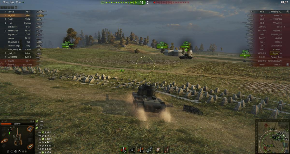 KPOT2338 Опубликовано: 5 января, 2017 Игроки 21 567 публикаций 38 512 боёв Жалоба Поделиться Опубликовано: 5 января, 2017 05 Янв 2017 - 14:52 пользователь Groommer сказал: Так он у всех есть?Если вопрос про отображение противника до боя то у всехhttp://cdn-frm-eu.wargaming.net/wot/ru/uploads/monthly_01_2017/post-7033054-0-53307200-1483624480_thumb.jpgПравда необходимо совпадение нескольких условий1) Наличие у противника танков с плохой маскировкой (желательно в первом ряду)2) Наличие у союзников танков с хорошим обзором (желательно в первом ряду)Трактор с полным наворотом видит только при совпадении этих условий (хотя возможно средних бриттов увидит и при выполнении только одного из условий)У 38Н макс обзор почти на 30м больше (Для ямы это полклетки) 1 Что не делается, всё к лучшему! (с) Cos 700=0.3420, Cos 850=0.0872Кто нибудь привяжите его руки к подлокотникам, и клавиатуру у него заберите. И вообще любое устройство с которого можно печатать. (с) kojot7Введите уже артприцел для всей техники Ссылка на комментарий Поделиться на других сайтах Другие способы поделиться...