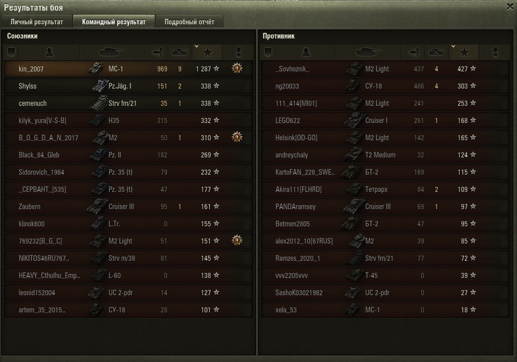 А я, выходя в рандом исключительно на МС-1, и наблюдая неестественнное поведение ботов (хаотичные движения, кручение башней, орудием, стрельба), уверен, что по результатам боя увижу только подтверждение своим выводам. Как правило, у них отсутствует дамаг, но что удивительно, иногда попадается вполне неплохая статистика :facepalm: (что особенно поражает во время боя, наблюдая "жёлтых" ботов). В итоге, я решил также просто добавлять всех ботов и бездействовавших (т.е. всех с 0 дамага) в свой чёрный список, даже не тратя время на разглядывание их профилей, правда кто-то сообщил мне что это не выход, т.к. "черный список" не резиновый и имеет какое-то ограничение. Интересно, какое?