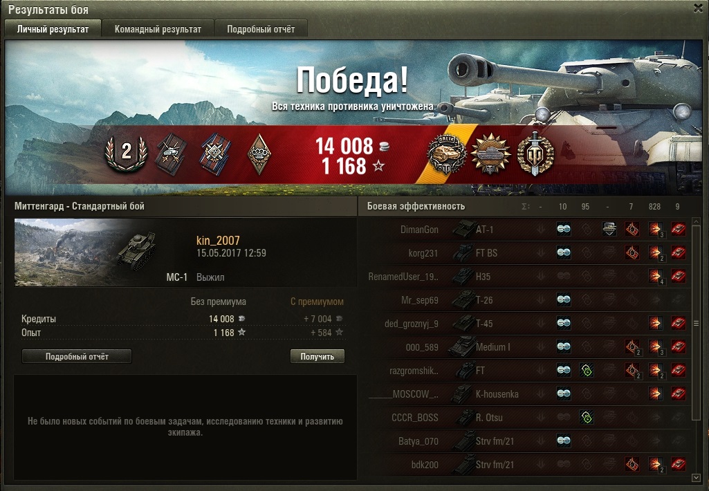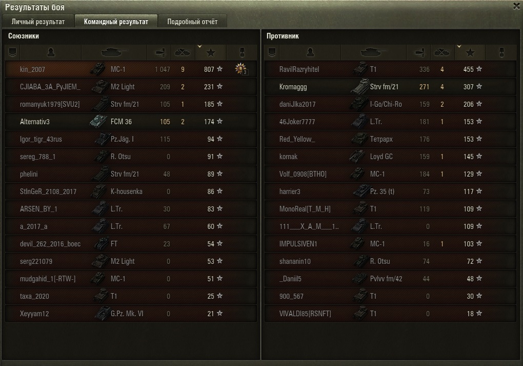 anonym_wGCUcrZbJzBp Опубликовано: 15 мая, 2017 Игроки 629 публикаций 11 996 боёв Жалоба Поделиться Опубликовано: 15 мая, 2017 15 Май 2017 - 12:11 пользователь kin_2007 сказал:Миттенгард.... В принципе, как дополнение к имевшимся, а не замена Провинции, карта сносная. Да и приноровились уже на ней Разведчиков брать (вот пример боя аж на 2 степень). Но Провинцию заменить ею, конечно, не лучший вариант был. Если бы он был исключительно для 1-х уровней, то да.А так М2 Light на этой карте косит всех и вся. 1 Ссылка на комментарий Поделиться на других сайтах Другие способы поделиться...