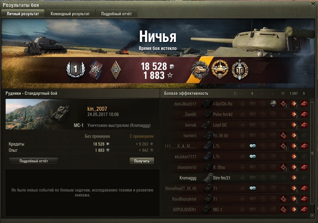 kin_2007 Опубликовано: 24 мая, 2017 Игроки 2 193 публикации 174 087 боёв Жалоба Поделиться Опубликовано: 24 мая, 2017 (изменено) Получилось при Ничье взять Основной калибр и этого хватило аж на 1 степень, прогресс налицо...http://wotreplays.ru/site/10100302#rudniki-kin_2007-ms-1 Изменено 24 мая, 2017 пользователем kin_2007 Экипаж МС купит домик в Провинции или участок в Малиновке, желательно в районе водоема, дорого, до неприличия дорого. Ссылка на комментарий Поделиться на других сайтах Другие способы поделиться...
